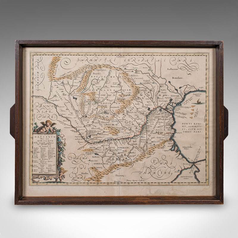 This is a superb antique cartographer's serving tray, a distinctive addition to the drawing room or lounge of an avid map collector or traveller to the region. Solid joints and construction, delivered ready for the home.
