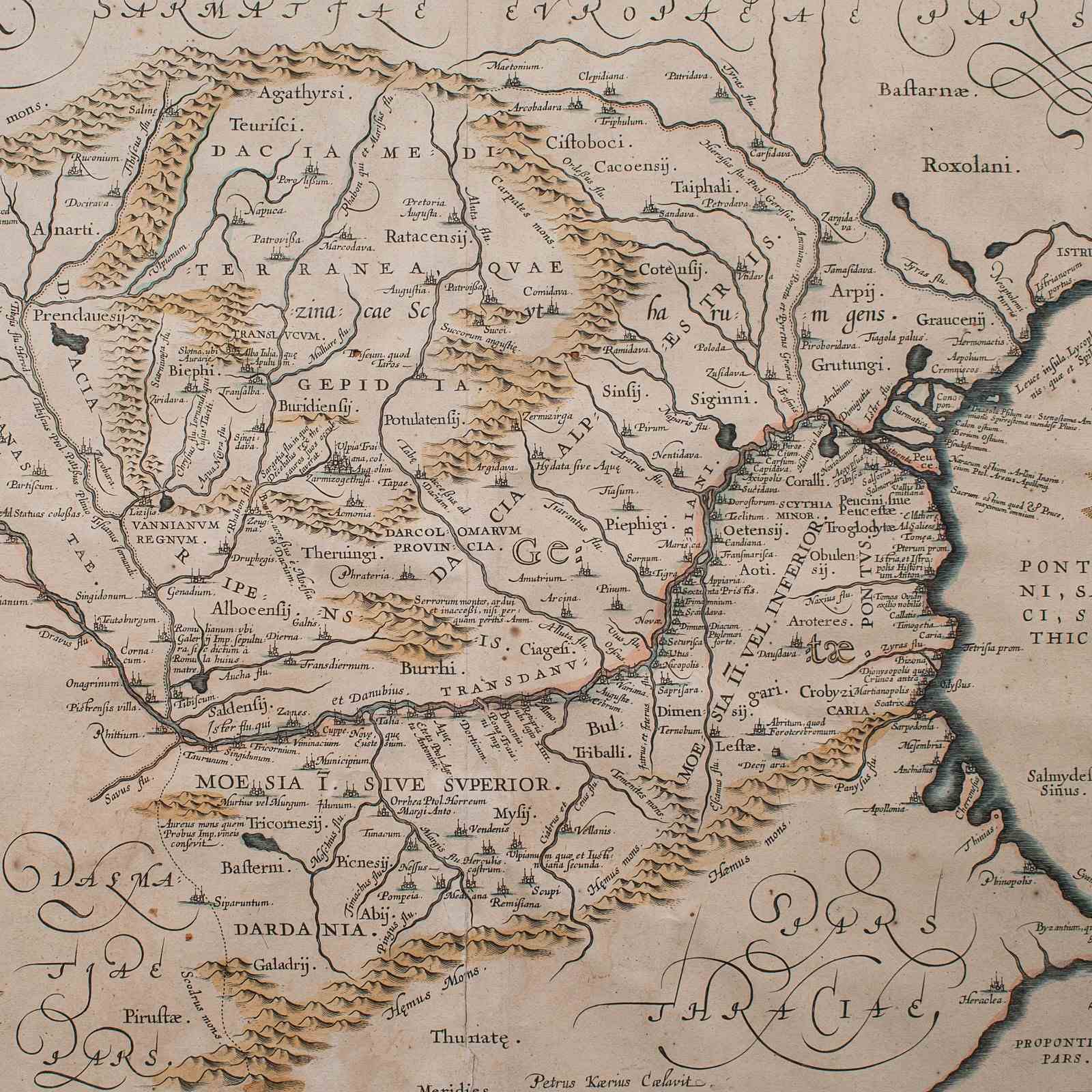 Depicts the ancient Dacia and Moesia regions, with Latin annotation