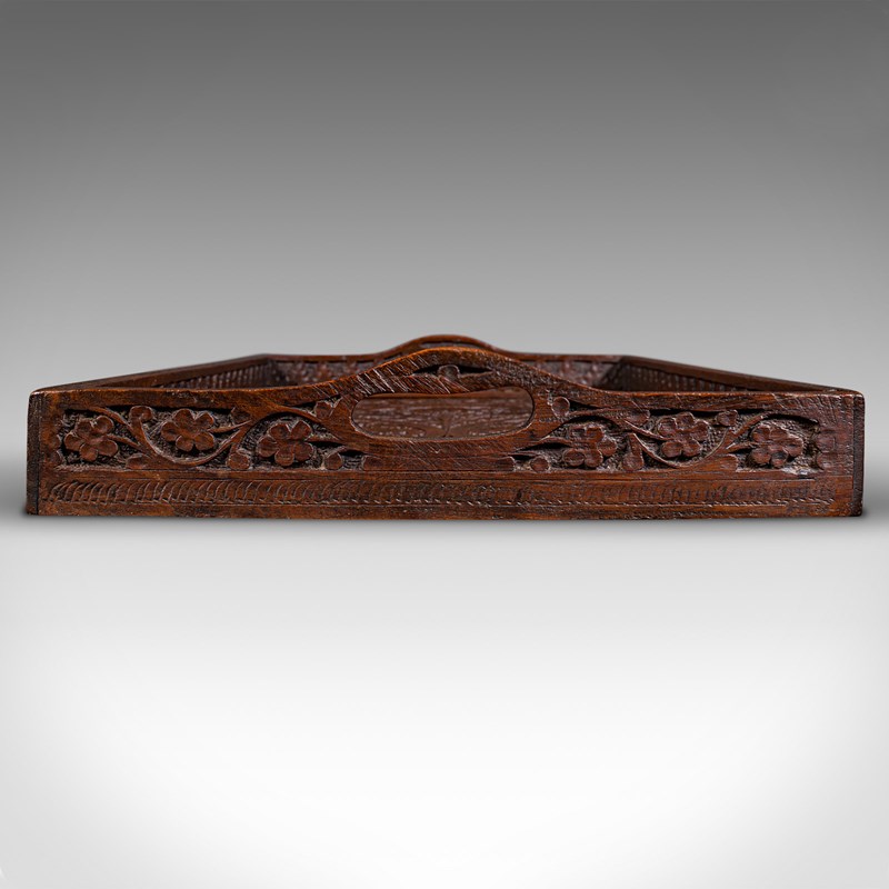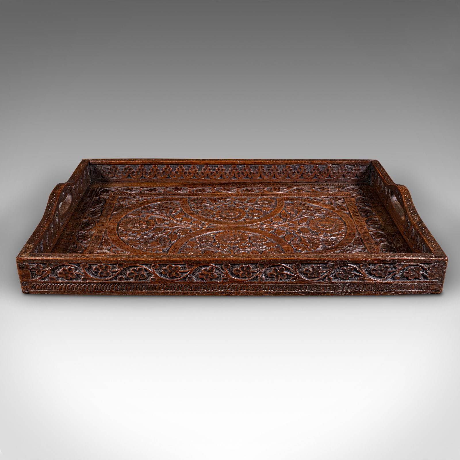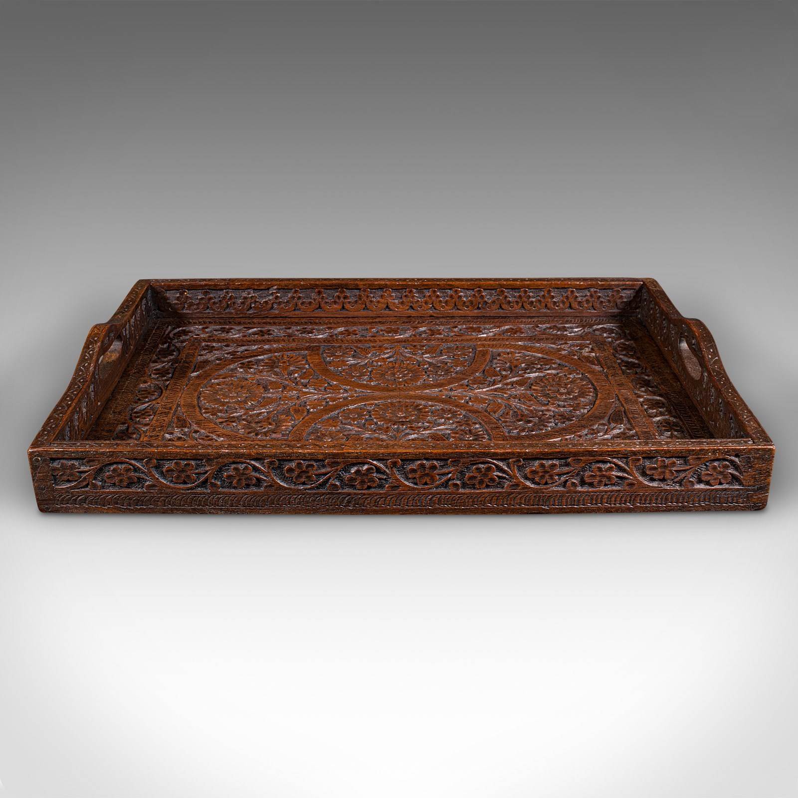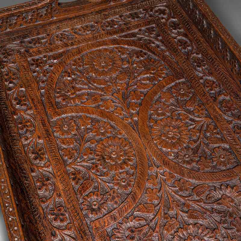 Antique Carved Serving Tray, Anglo-Indian, Teak Afternoon Tea Platter, Victorian