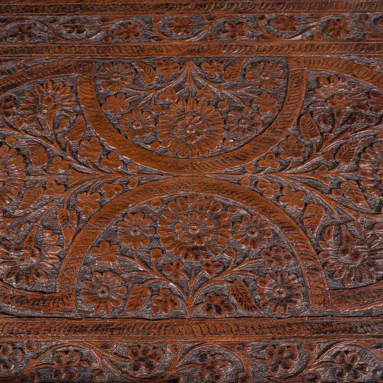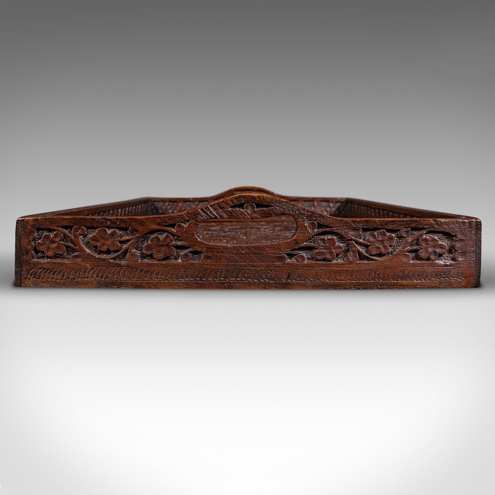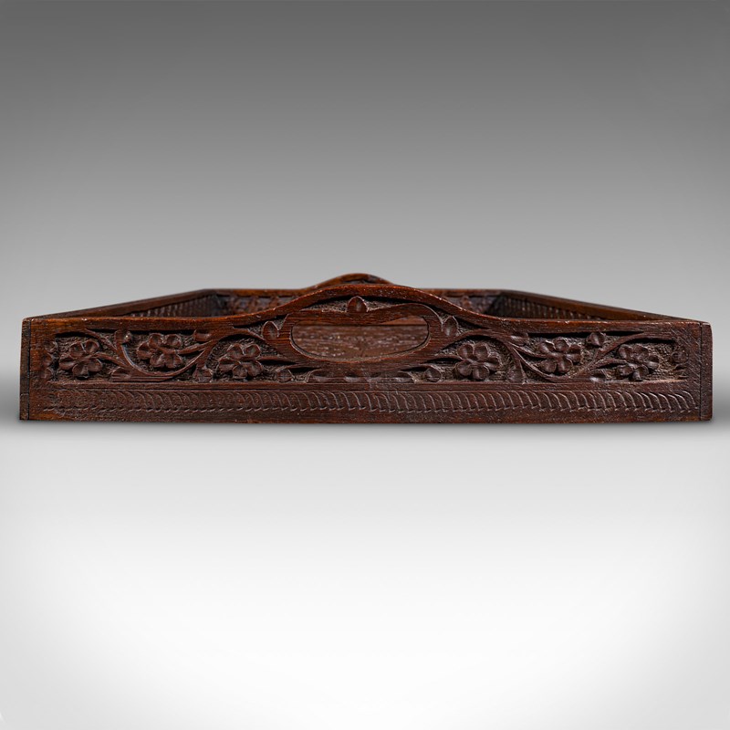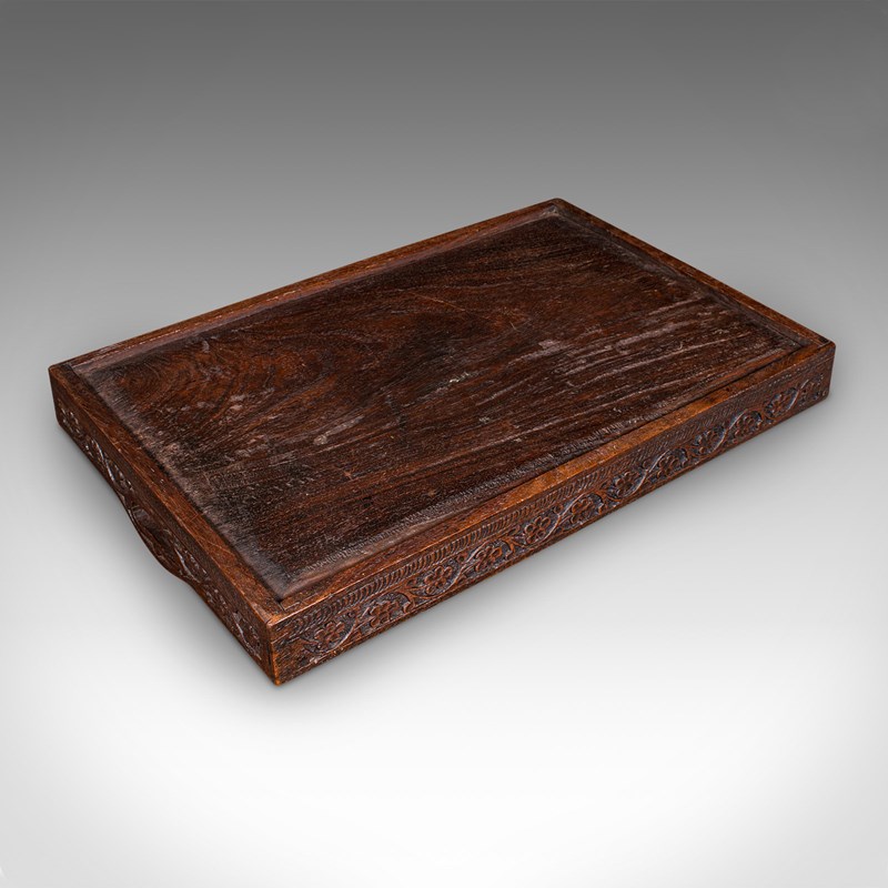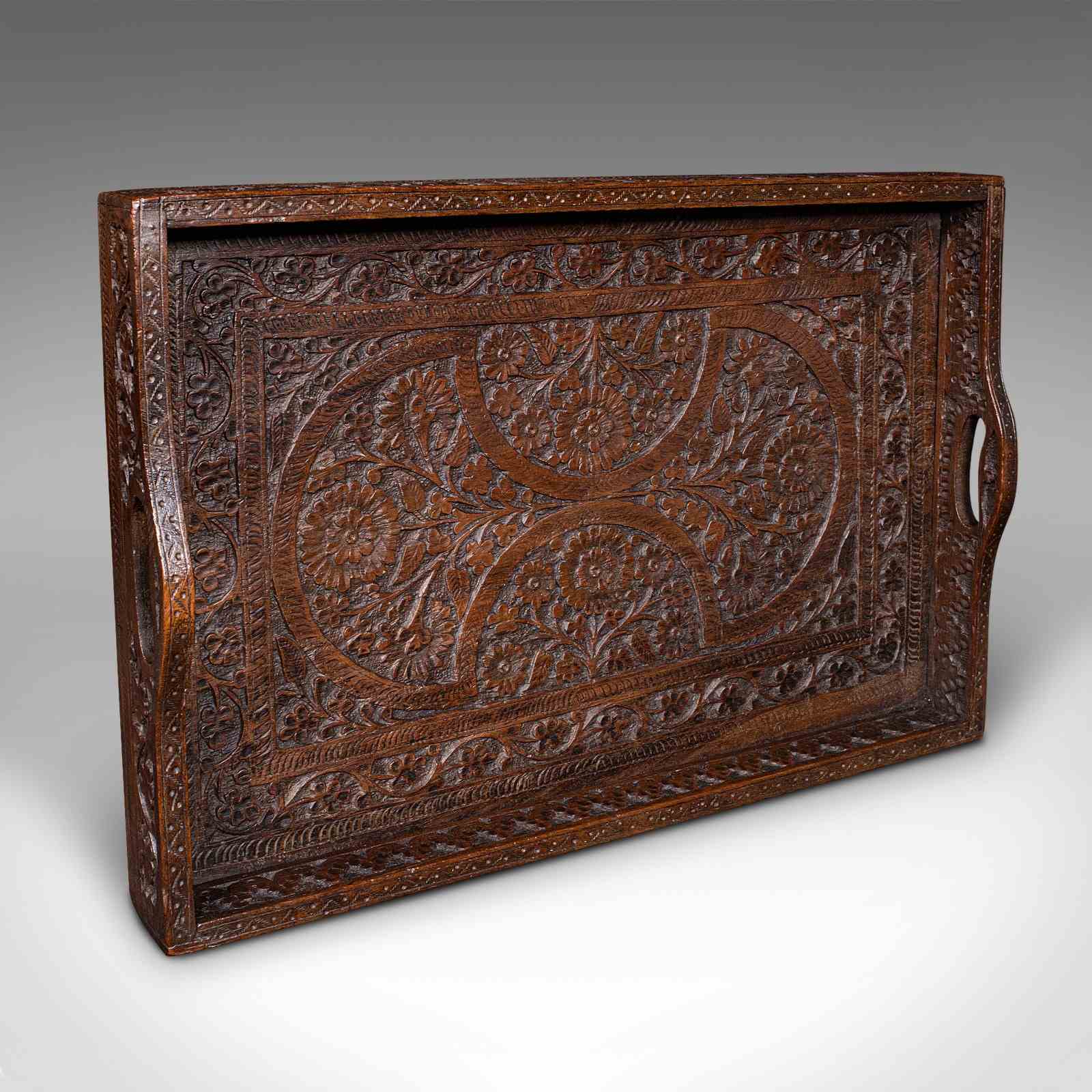 Antique Carved Serving Tray, Anglo-Indian, Teak Afternoon Tea Platter, Victorian