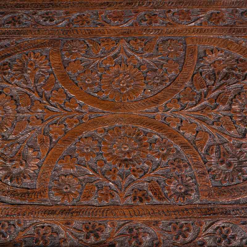 Striking Anglo-Indian tray with profuse hand-carved ornamentation throughout