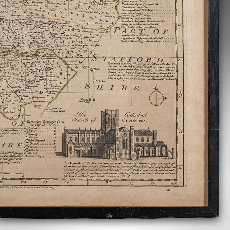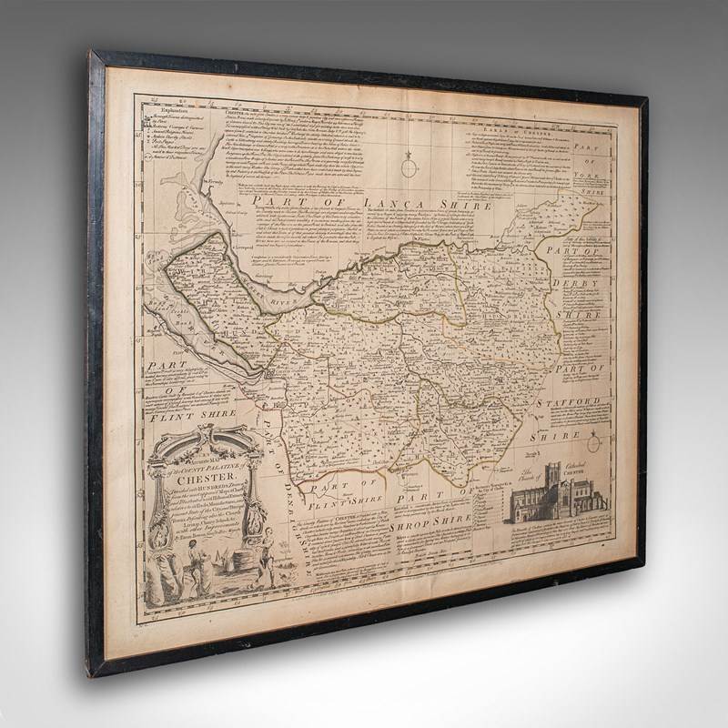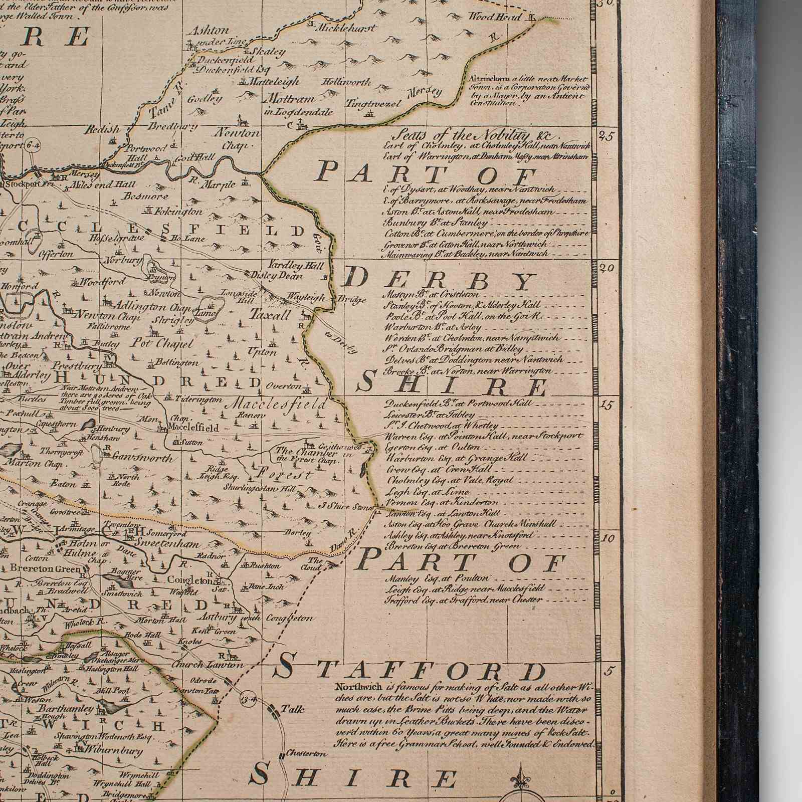 Antique Chester County Map, English, Cheshire, Framed Cartography, Georgian