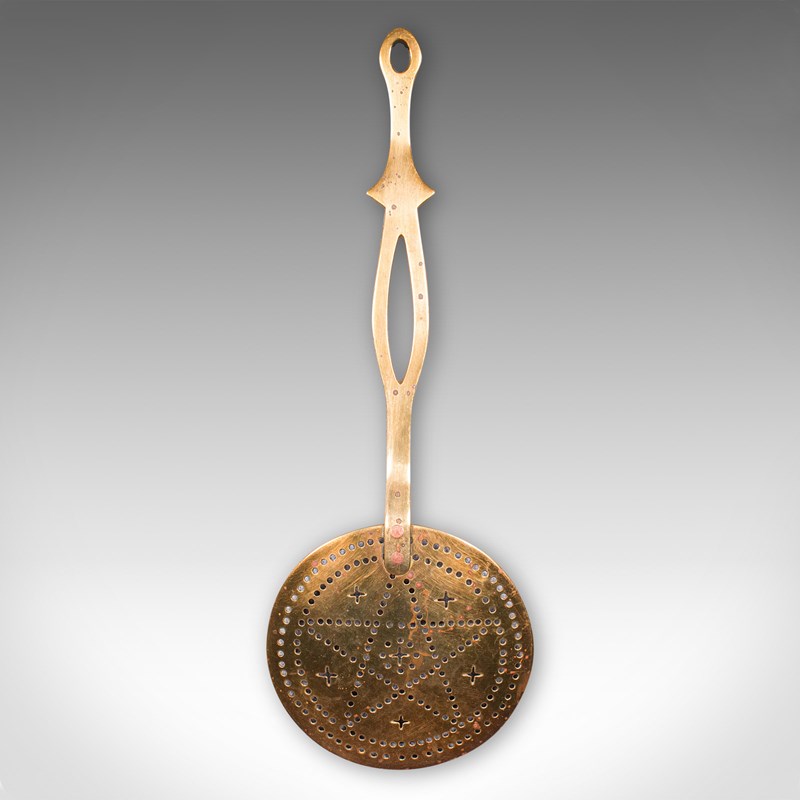 Antique Chestnut Warmer, English, Brass, Fireside Crumpet Toaster, Georgian