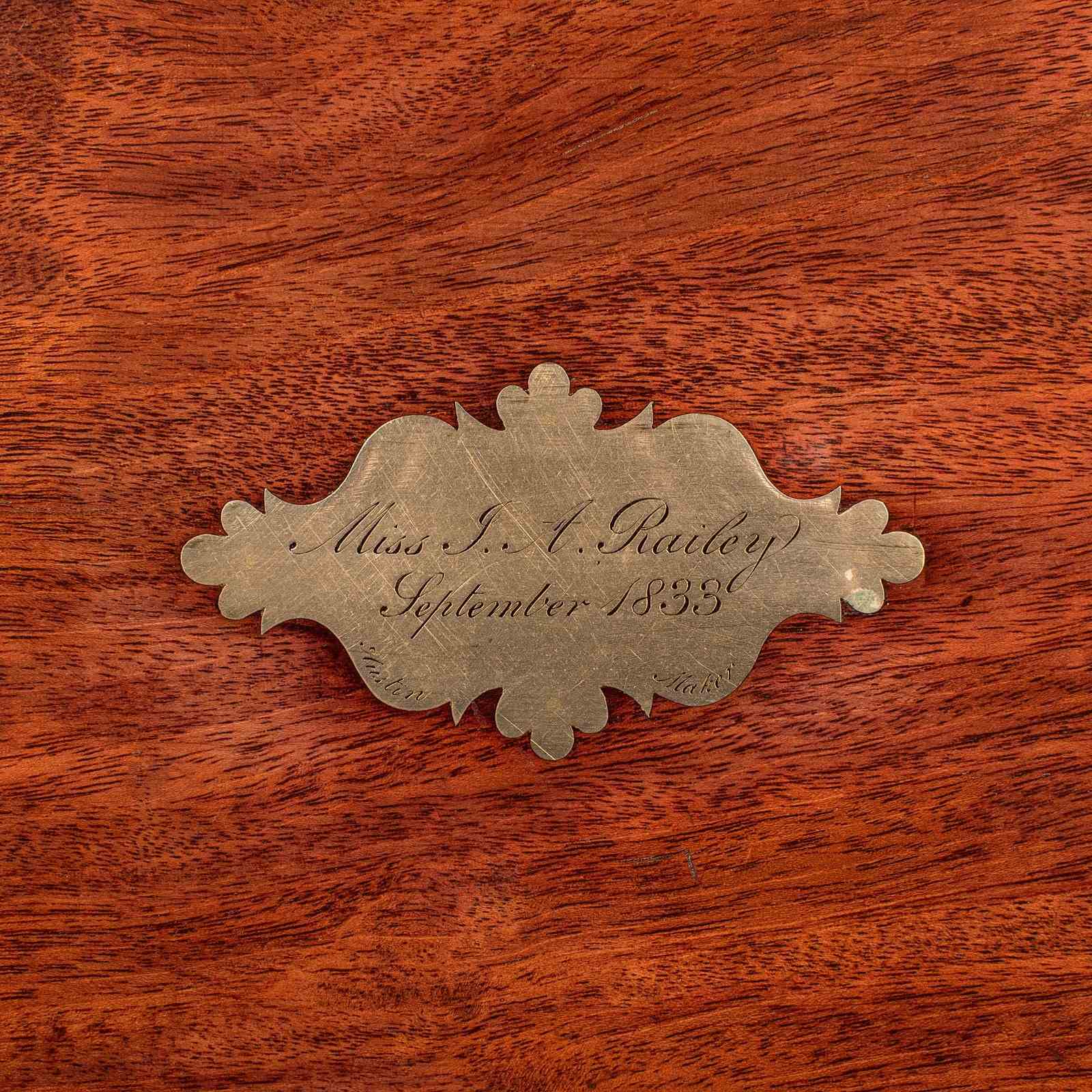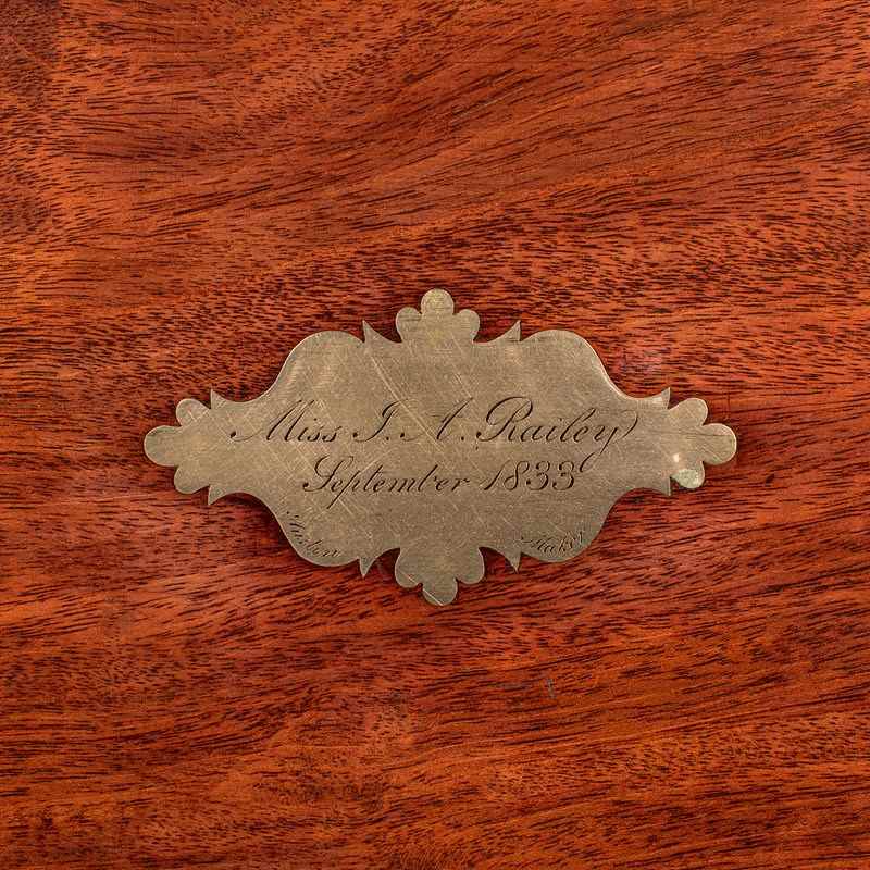 Personalised brass plaque to the lid, as gifted to a Miss J.A. Railey in September 1833