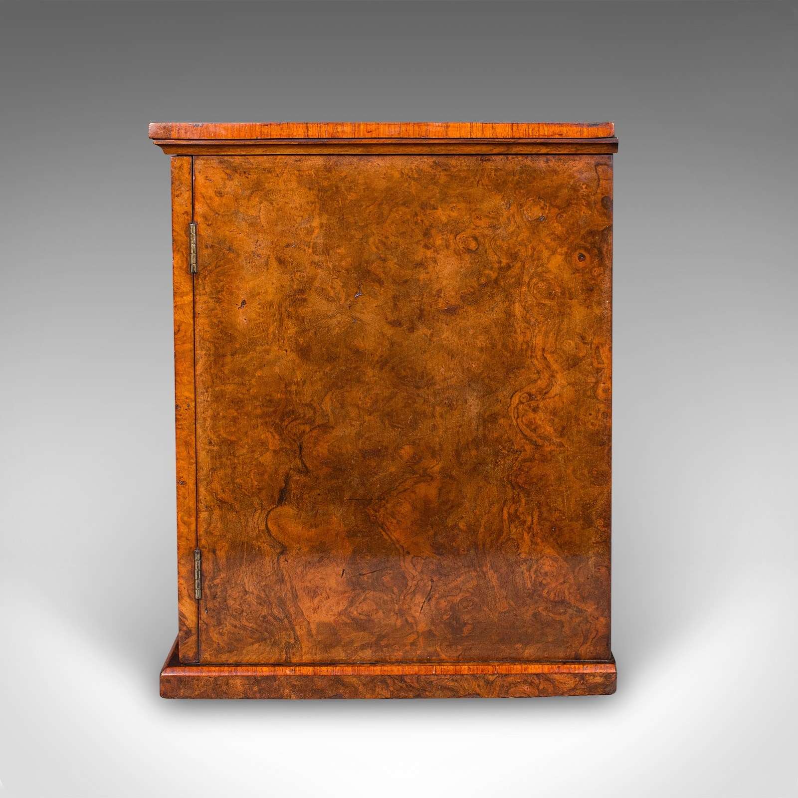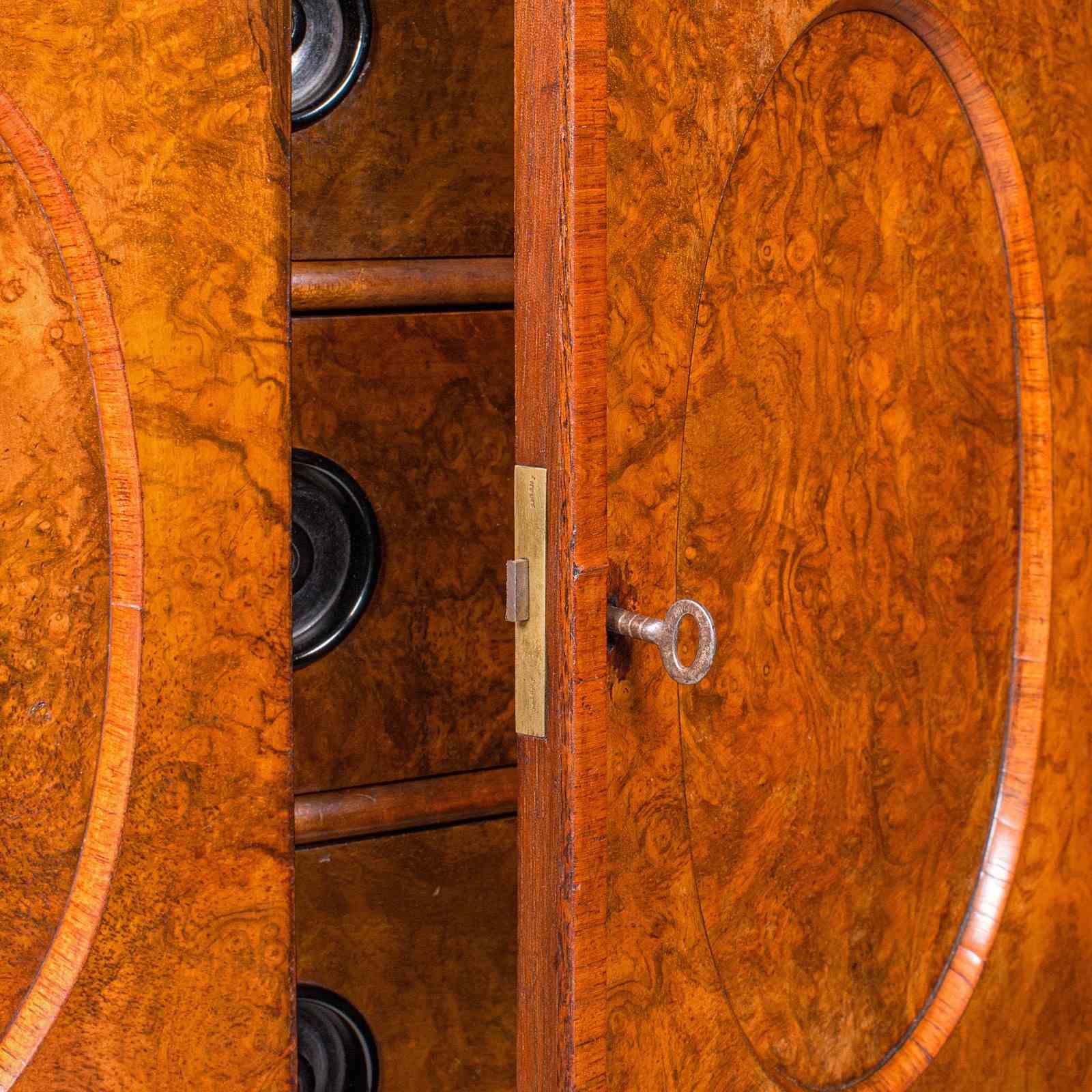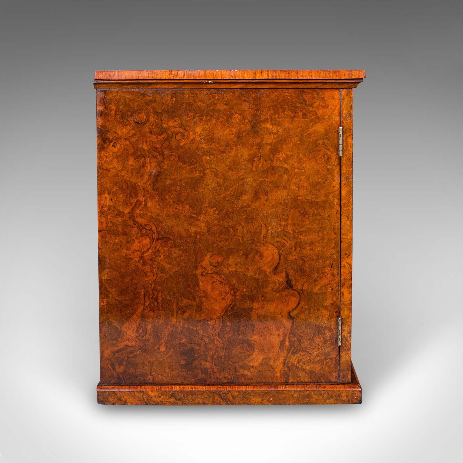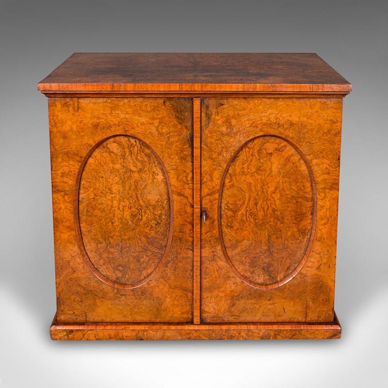 A superb example of early Victorian dining furniture, this antique burr walnut napkin cabinet exudes country house charm and craftsmanship. Ideal for use in a fine dining room, butler’s pantry or refined townhouse interior. Solid joints and construction, delivered ready for the home or institution.