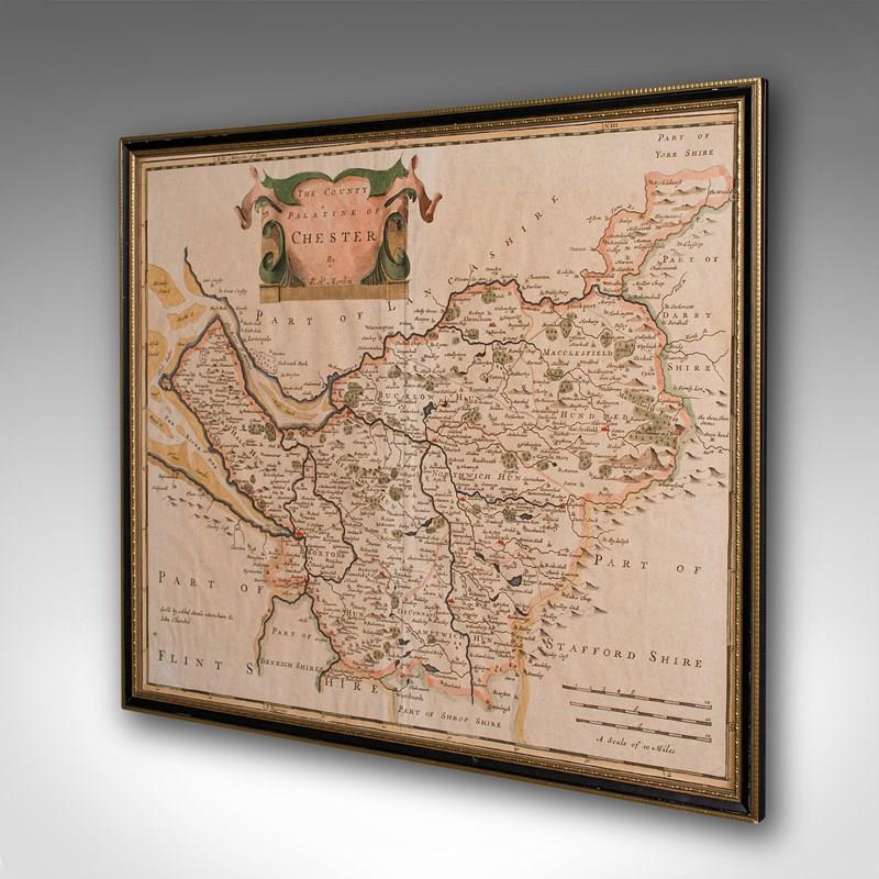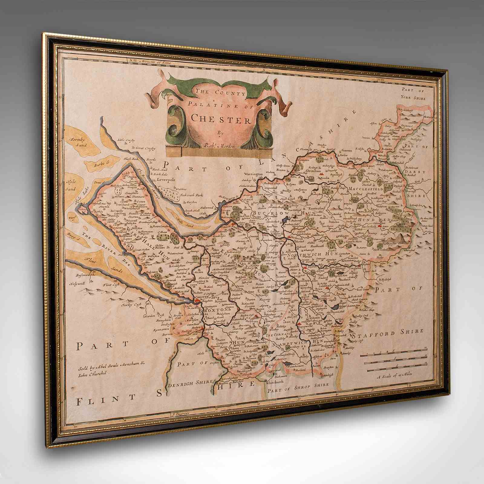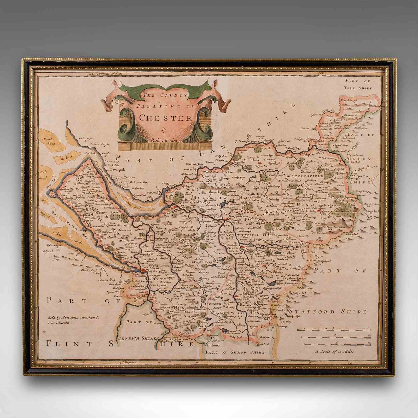 Antique County Map, Cheshire, English, Framed Cartography, Robert Morden, 18Th.C