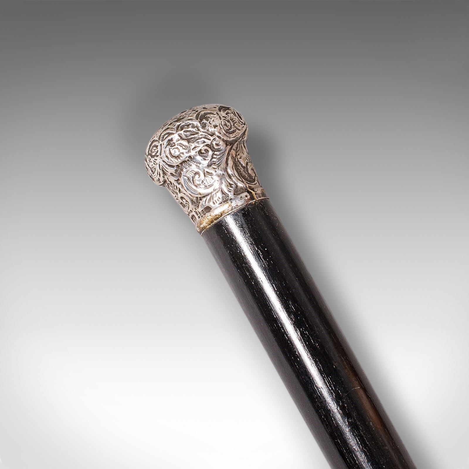Antique Dandy’S Walking Cane, English, Stick, Ebonised, Victorian, 1889 Hallmark