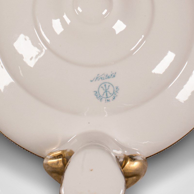 This is an antique decorative footed bowl. A Japanese, ceramic two piece serving dish by Noritake, dating to the early 20th century, circa 1920.