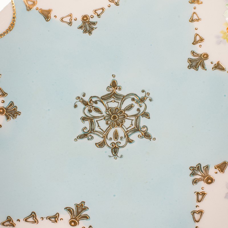 - Delightful foliate studies present wonderful colour to the bowl interior, upon a blue star motif