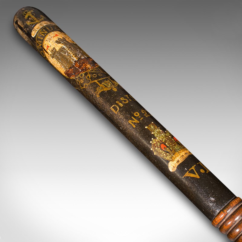 This is a superb antique decorative truncheon, a well used and pleasingly handpainted memento of the Edinburgh police service in the Victorian period. Delivered ready to display.