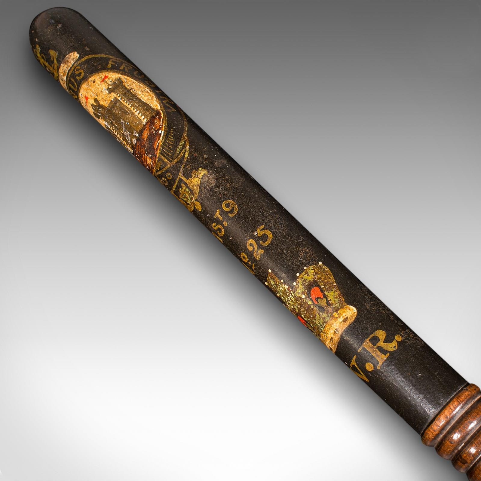 This is an antique decorative truncheon. A Scottish, beech Edinburgh police baton with handpainted detail, dating to the Victorian period, circa 1850.