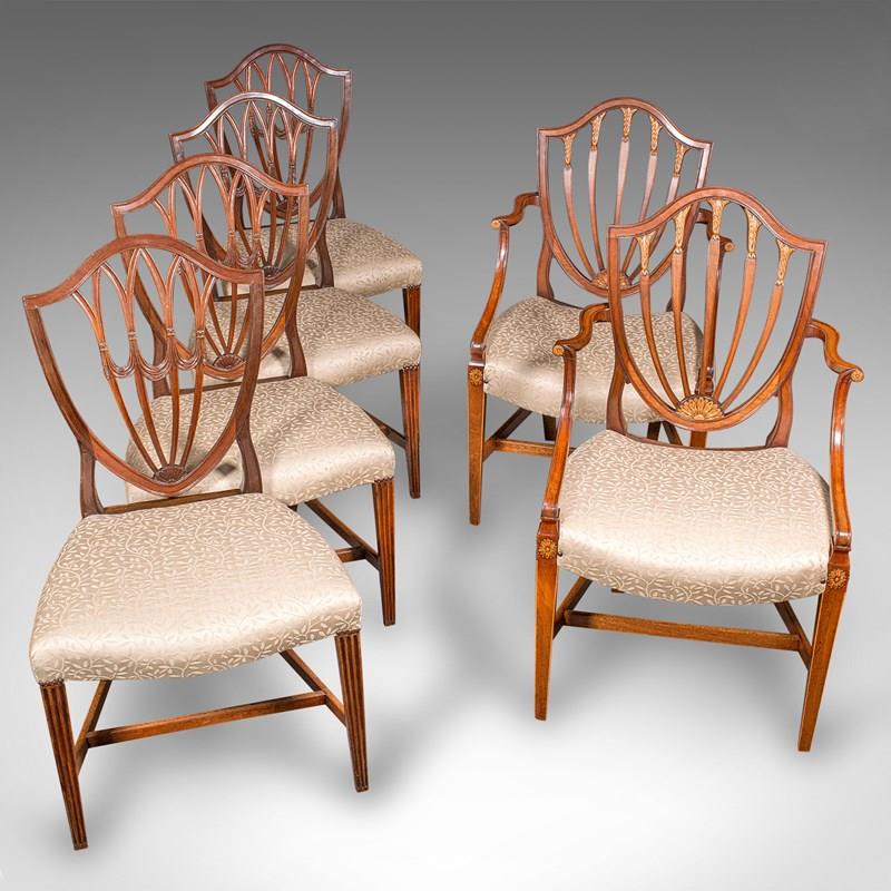 Superb Hepplewhite influenced design, characterised by classic shield backs and neoclassical motifs