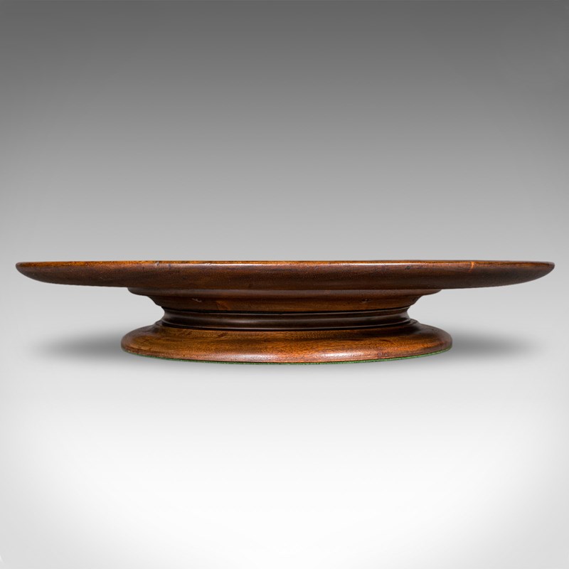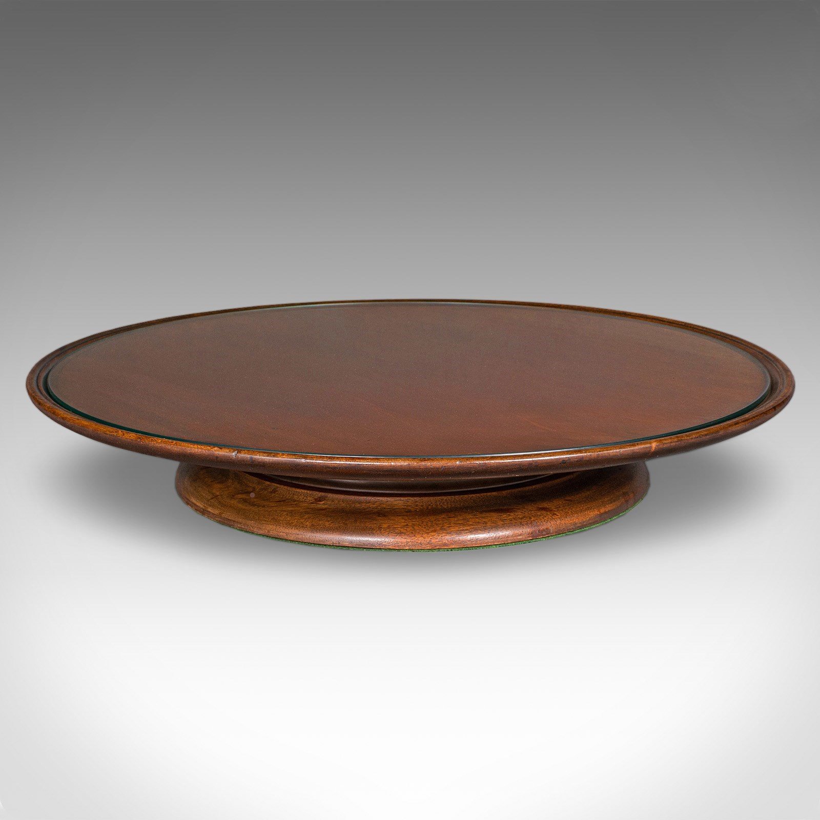 This is an antique display turntable. An English, walnut and glass Lazy Susan, dating to the Edwardian period, circa 1910. An appealing and versatile example, offering generous proportion and smooth rotation for presentation or serving.
