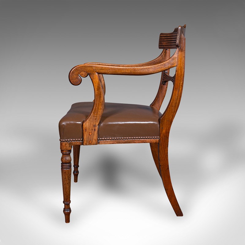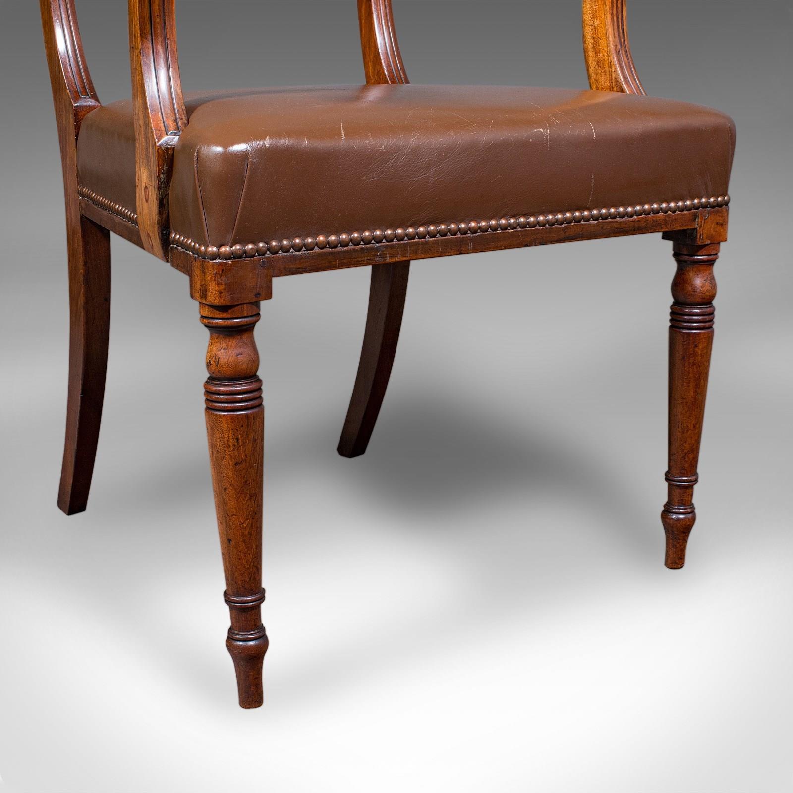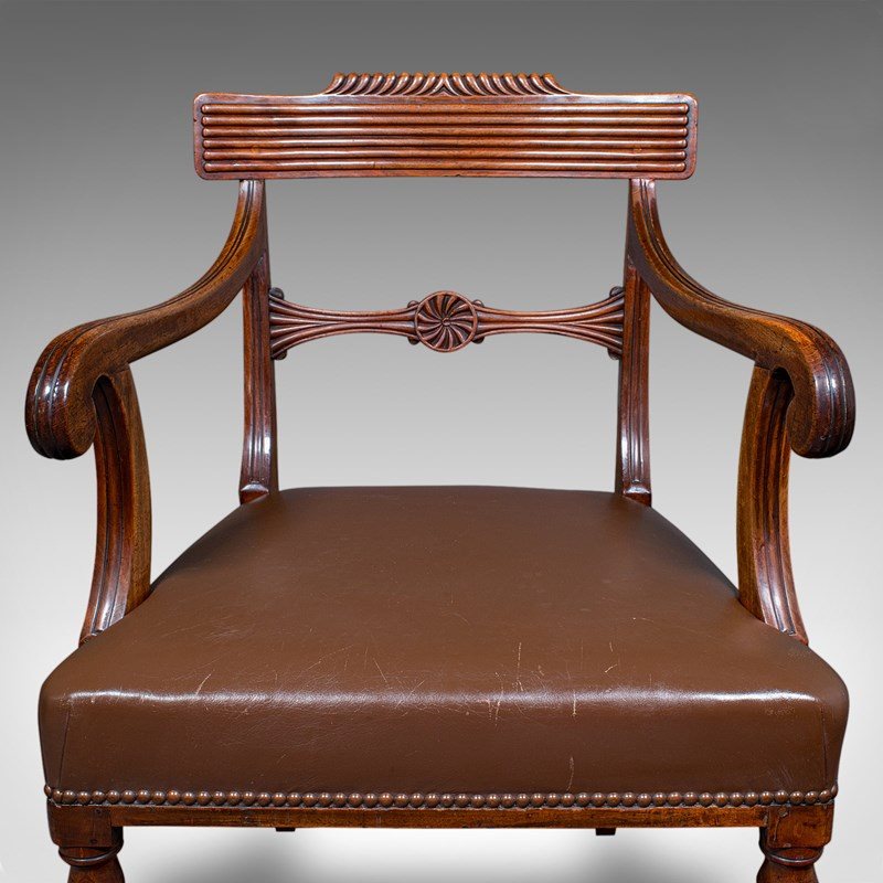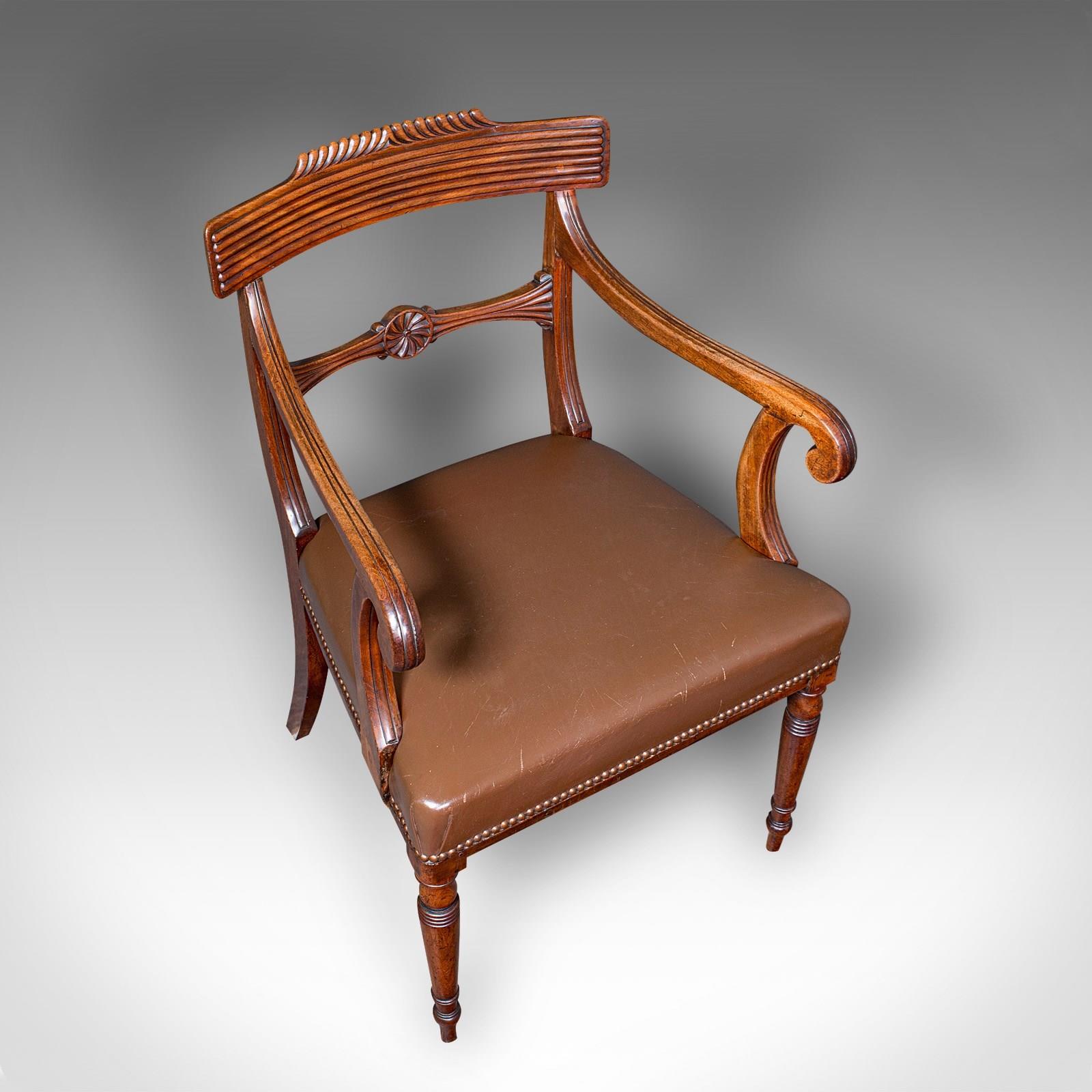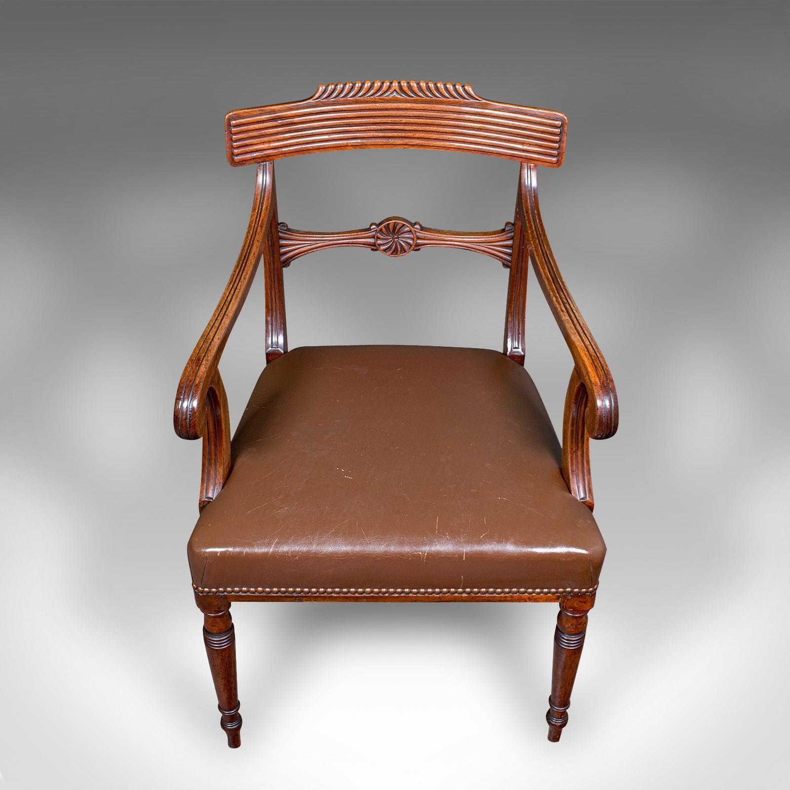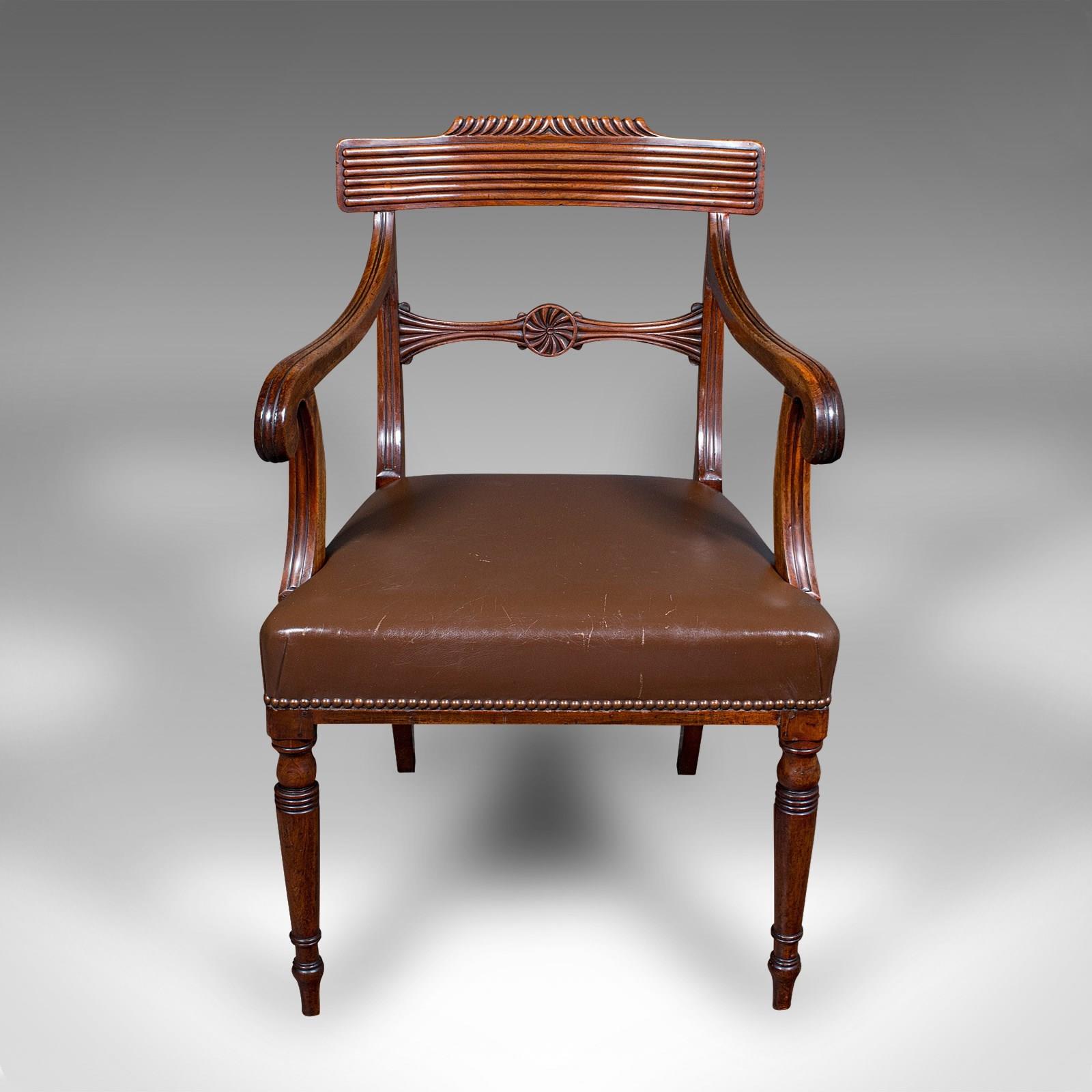 Antique Drawing Room Elbow Chair, English, Leather, Desk Seat, Regency, C.1820