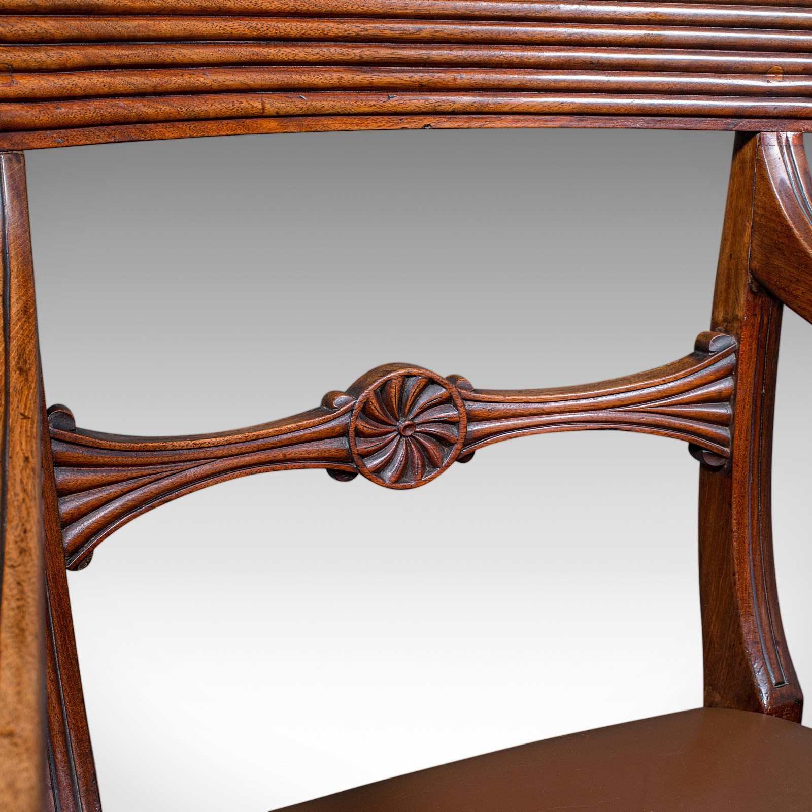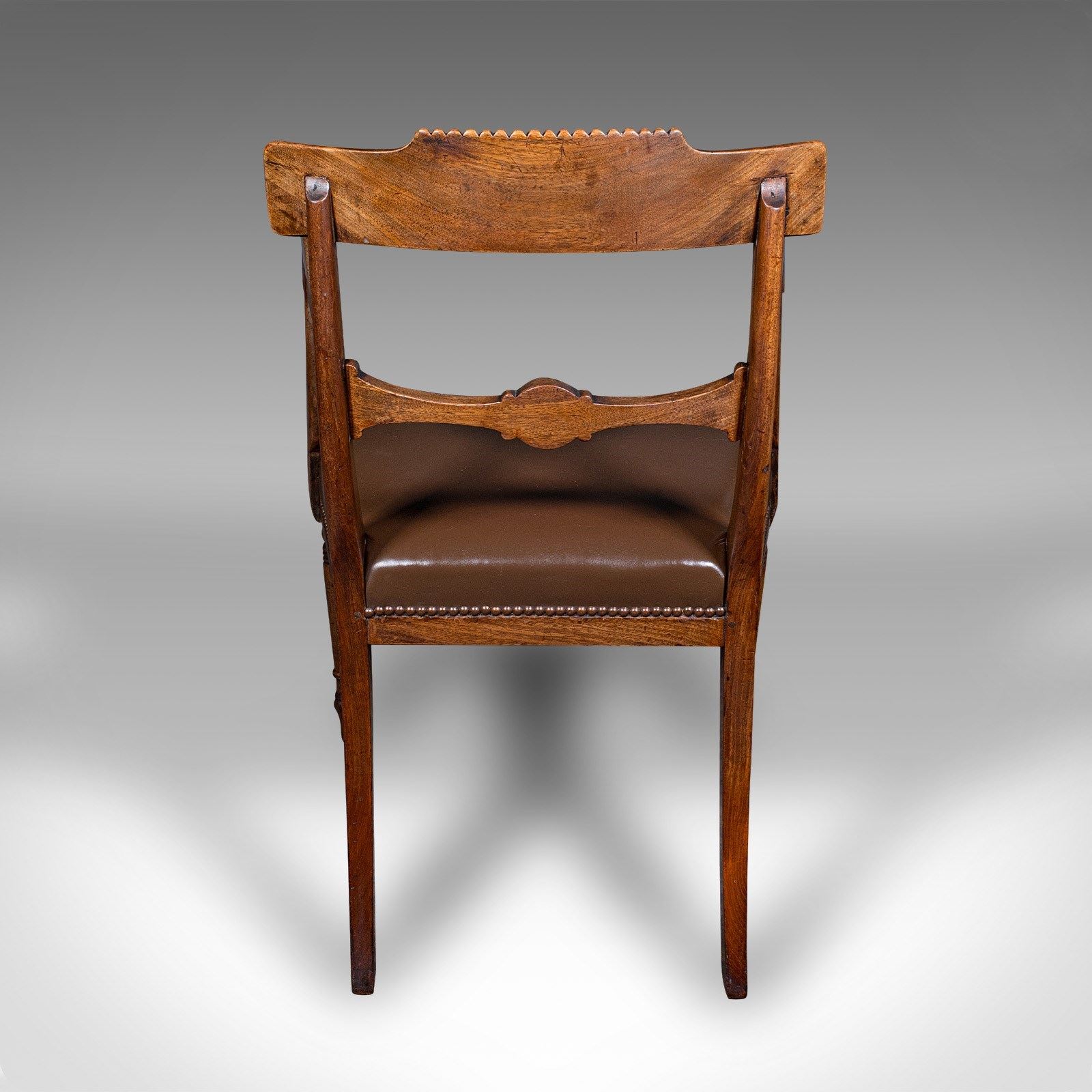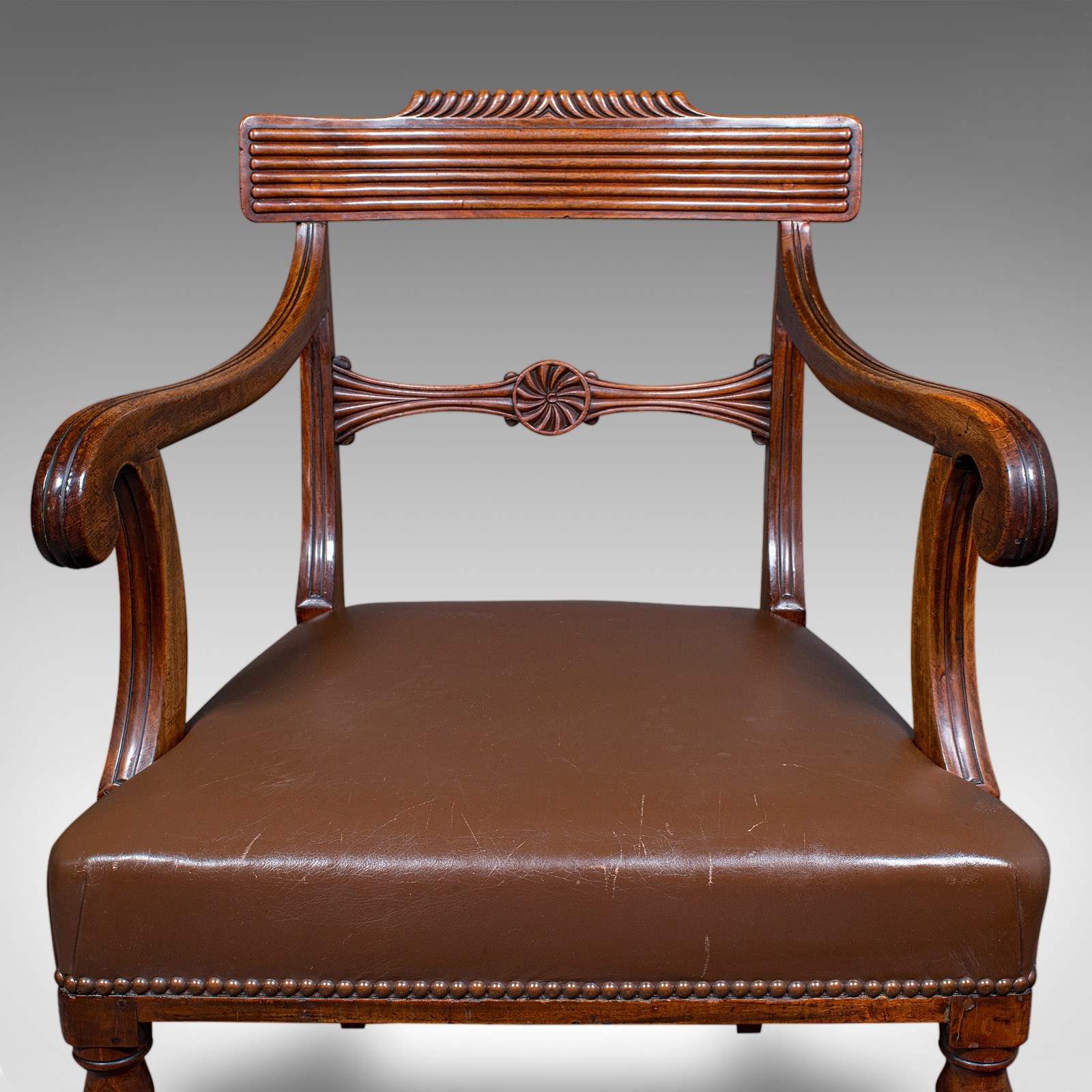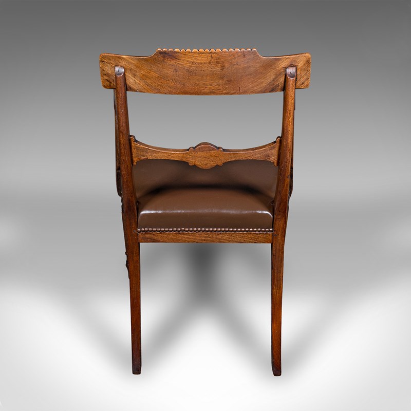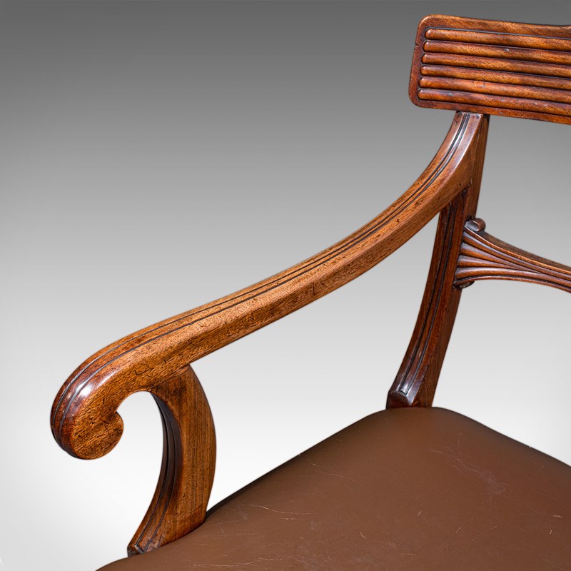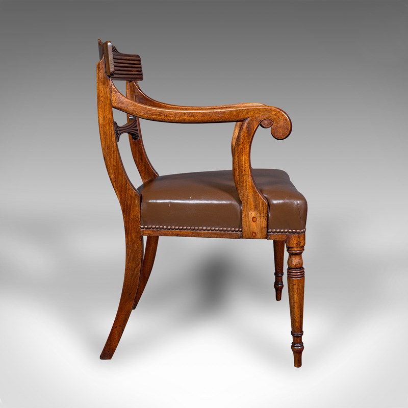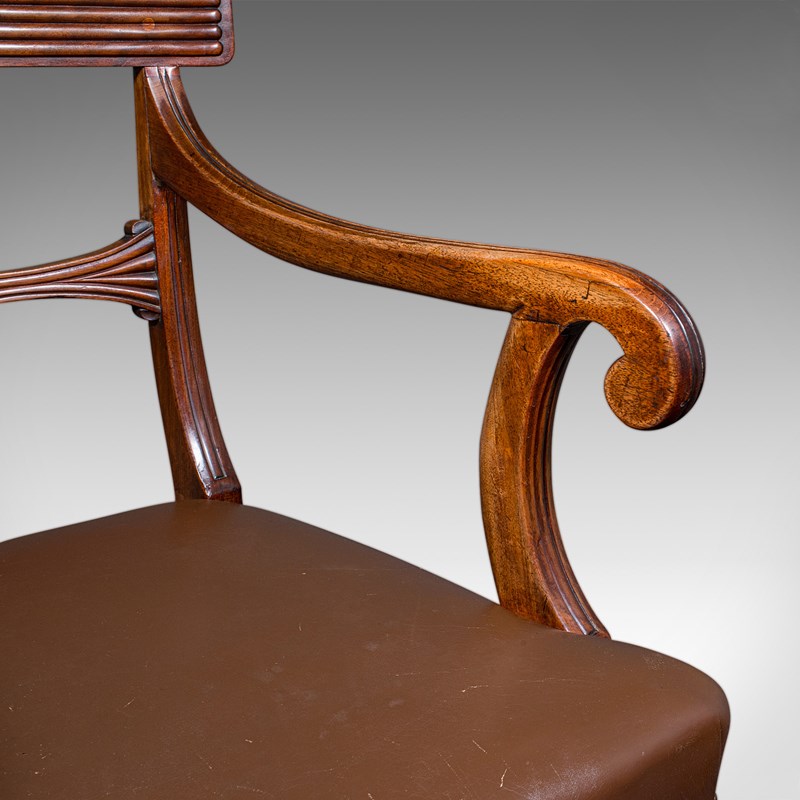Antique Drawing Room Elbow Chair, English, Leather, Desk Seat, Regency, C.1820