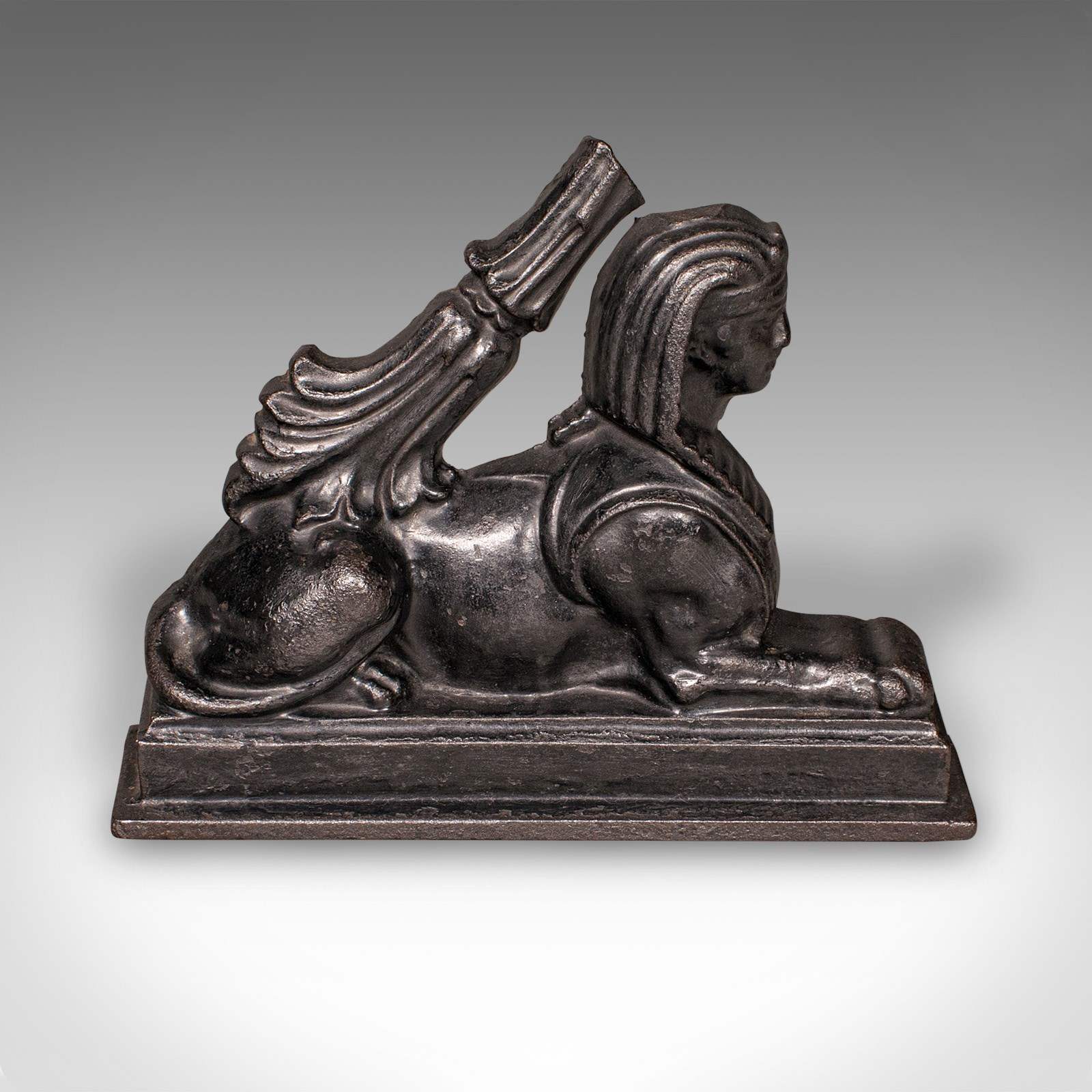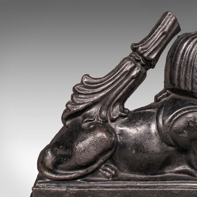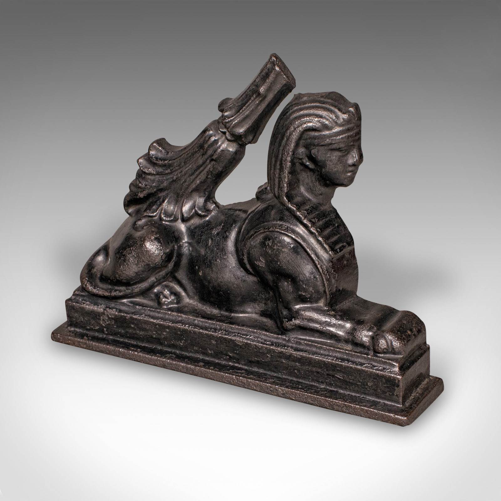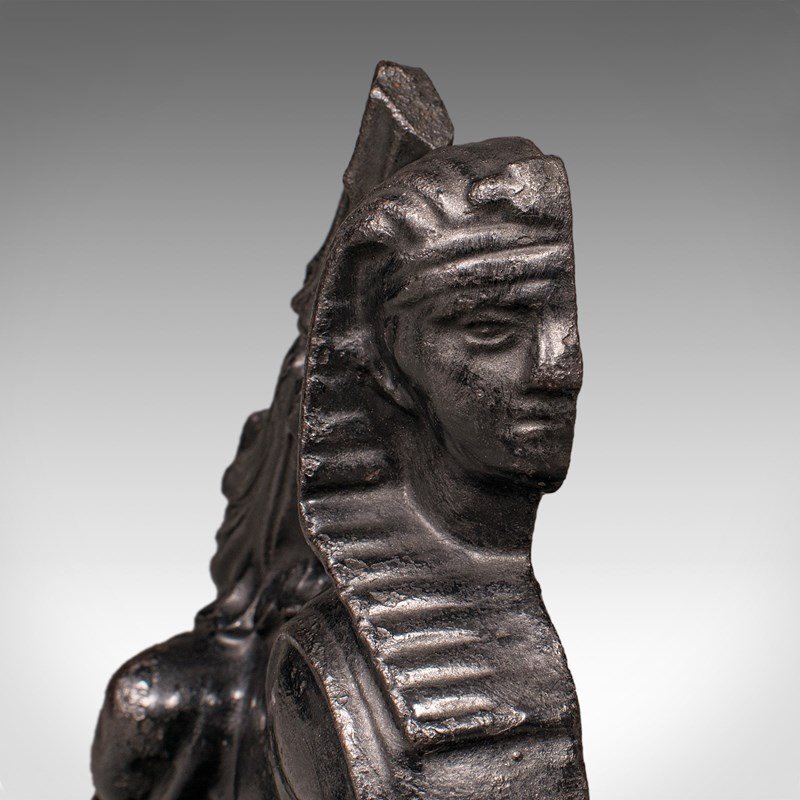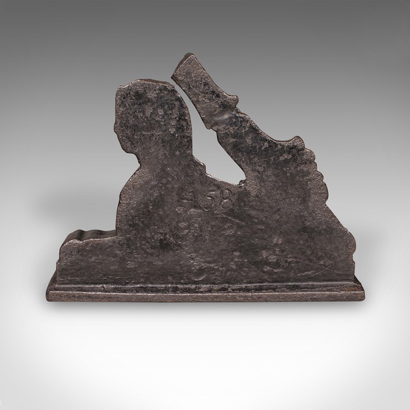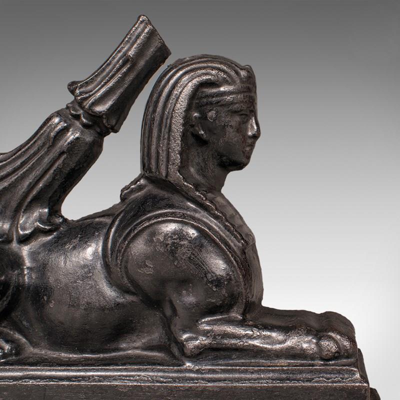 Antique Egyptian Revival Doorstop, English Cast Iron Sphinx, Regency, Circa 1830