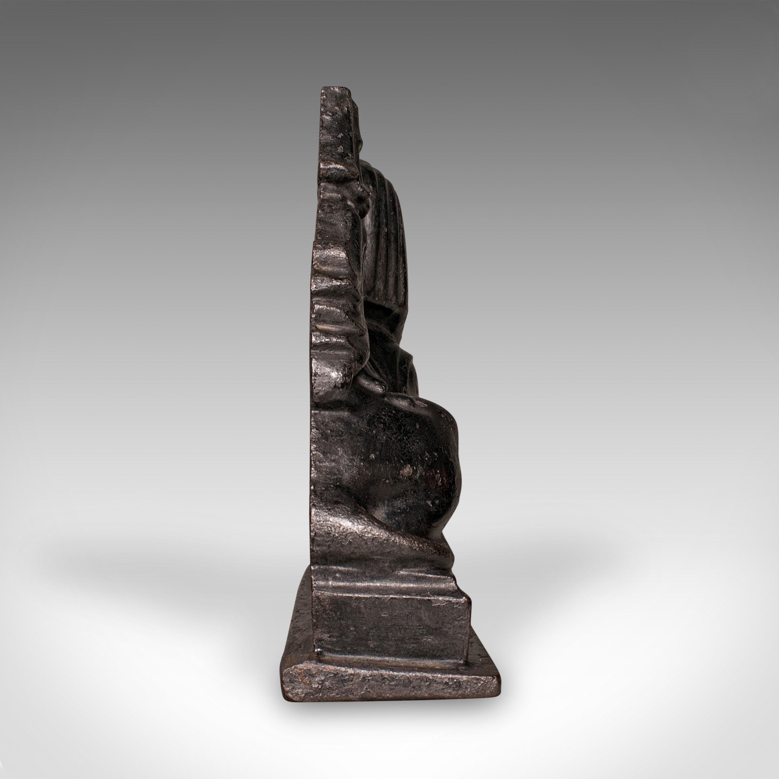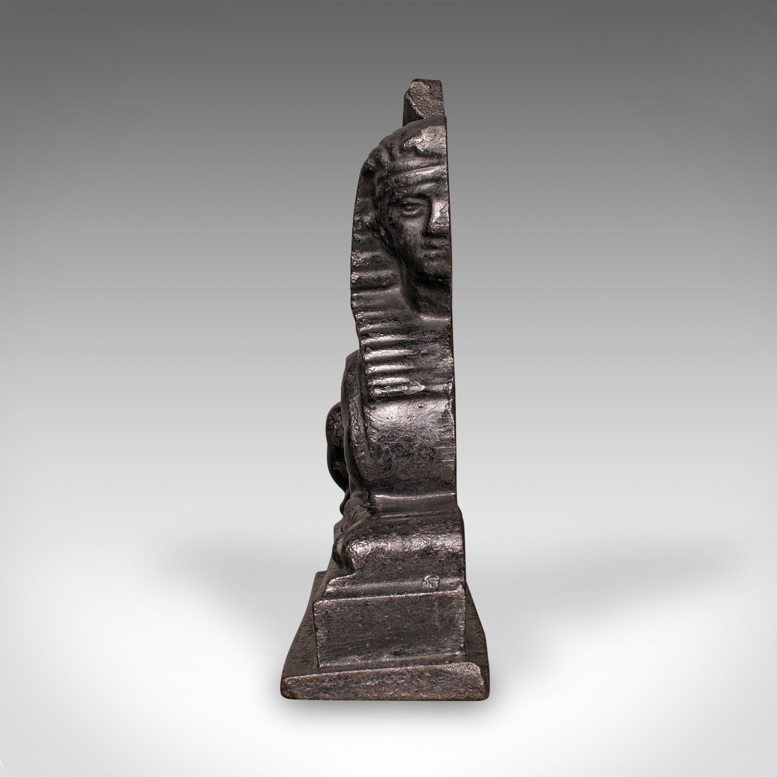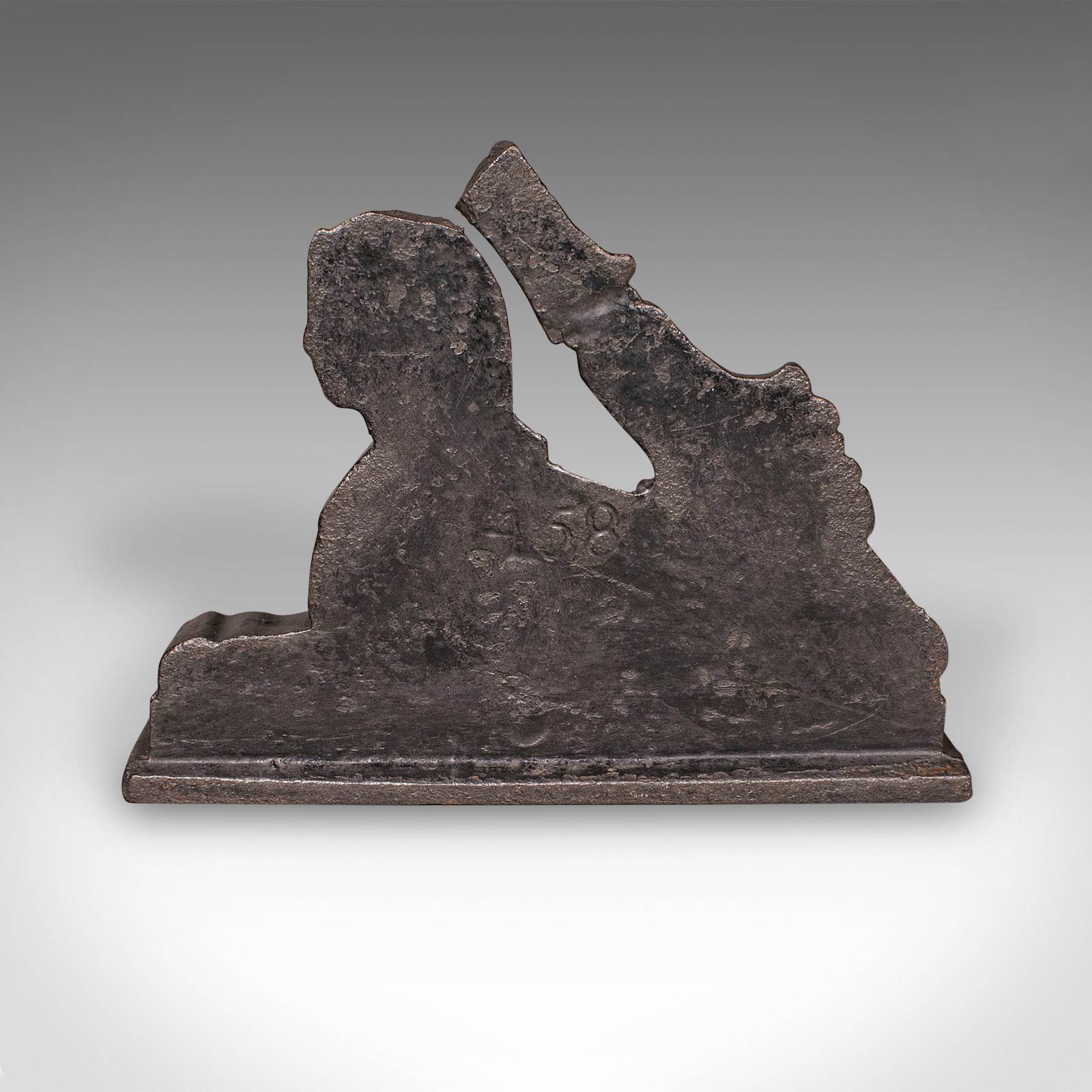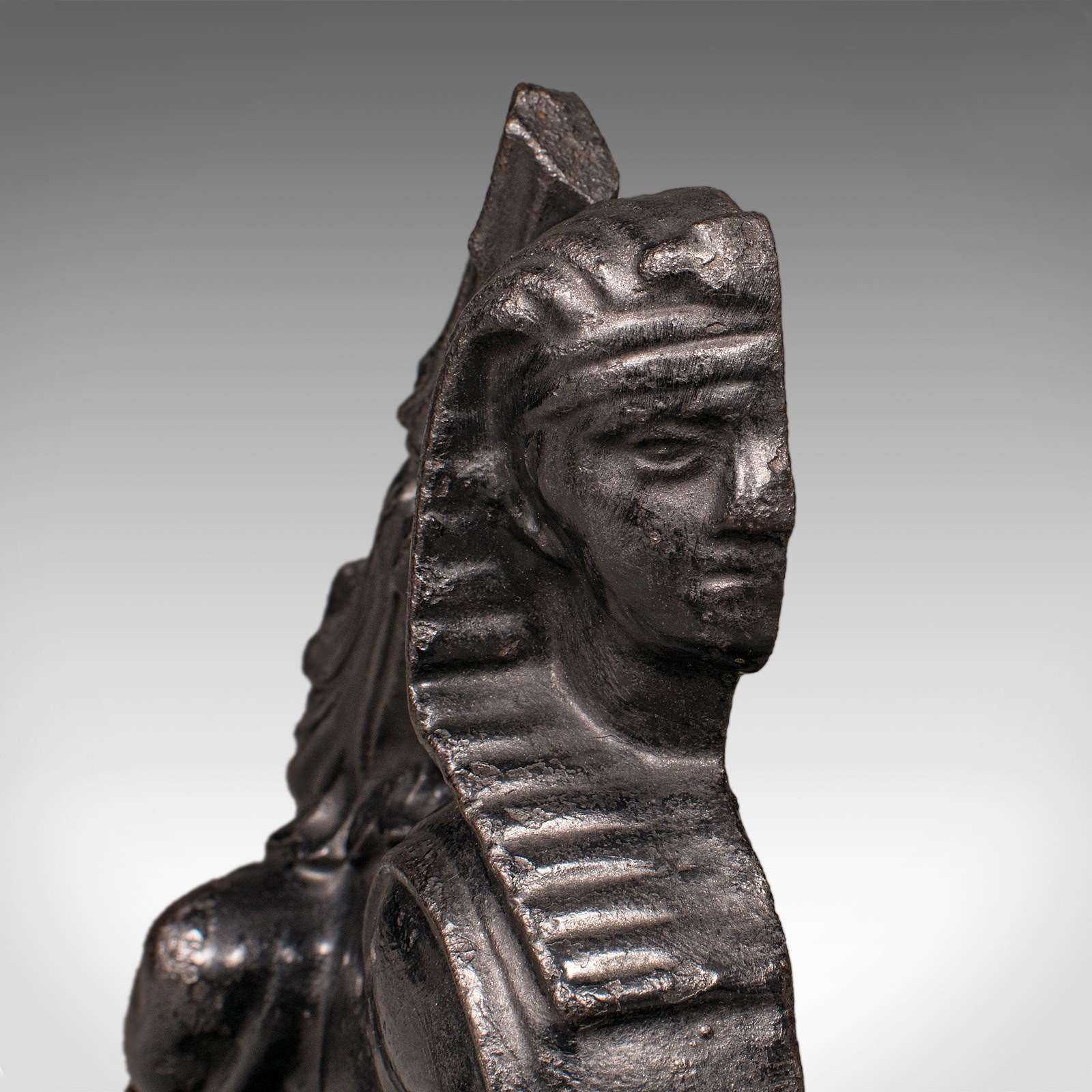 This is an antique Egyptian revival doorstop. An English, cast iron door keeper in Sphinx form, dating to the late Regency period, circa 1830. A wonderfully evocative piece of early 19th century interior decor, celebrating Britain’s fascination with Egyptian revival design.