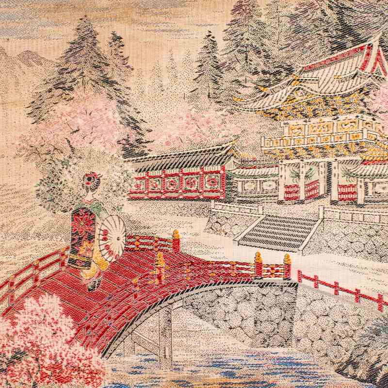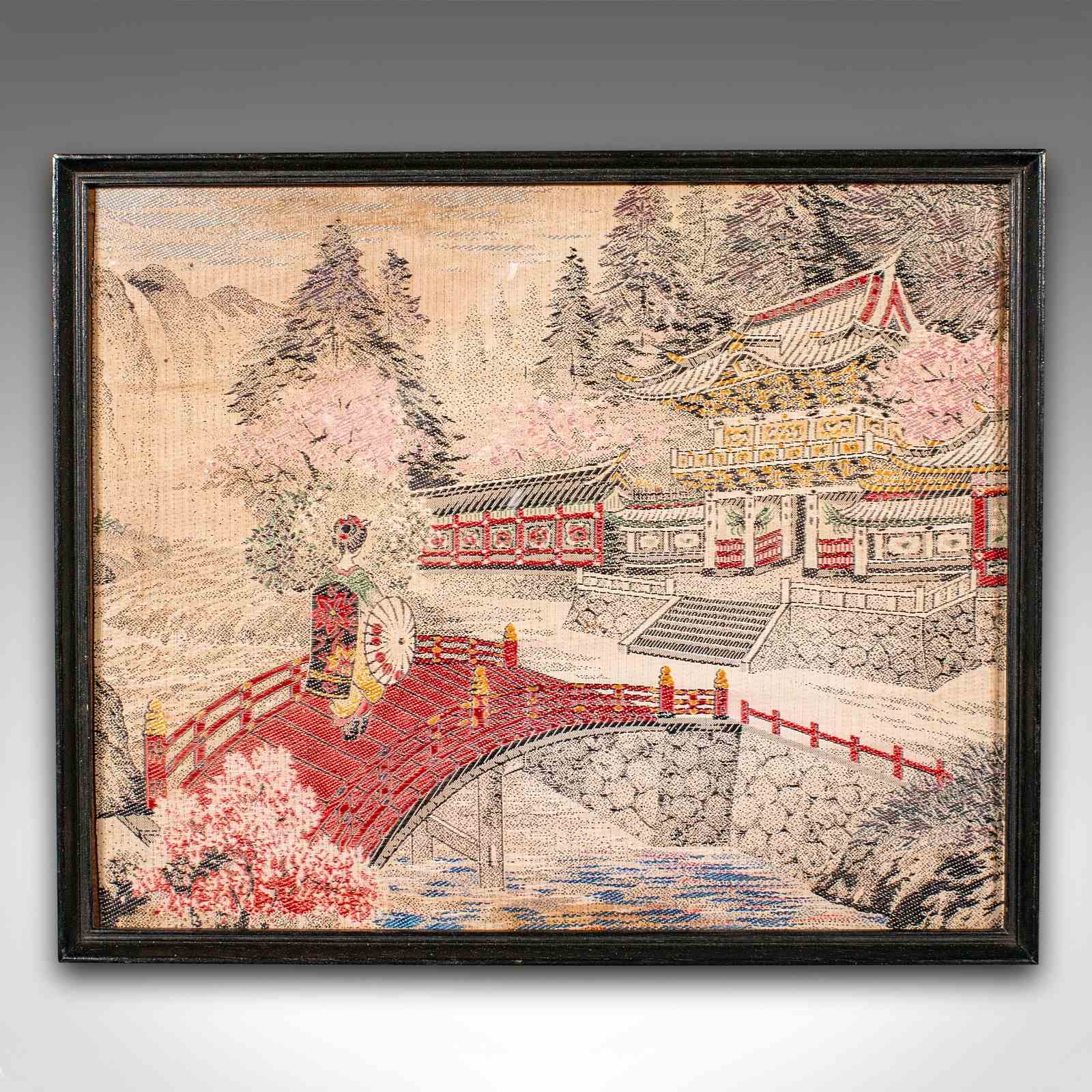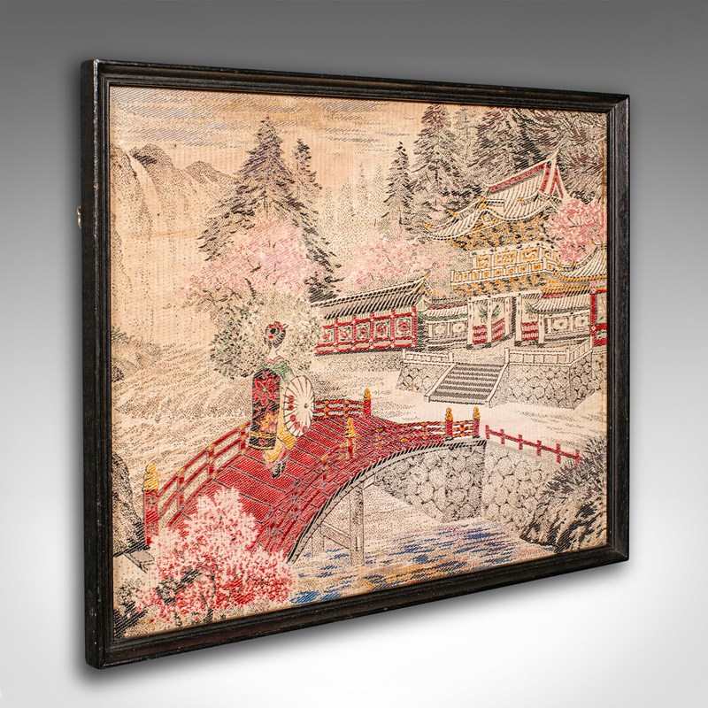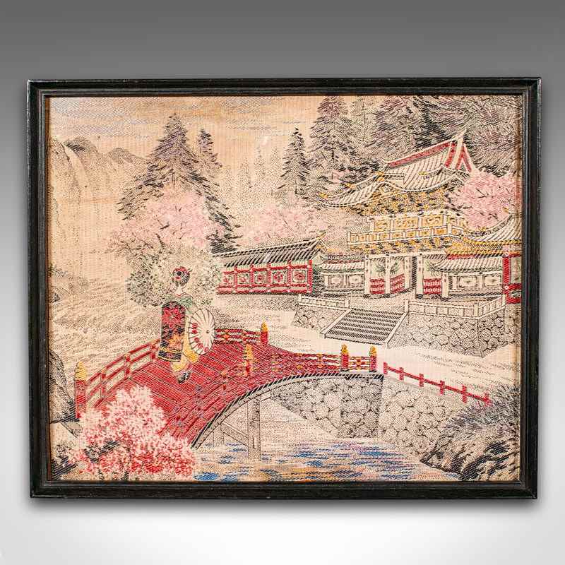 Finely embroidered Japanese scene, ideal for collectors of Oriental art or refined interiors