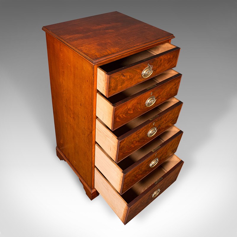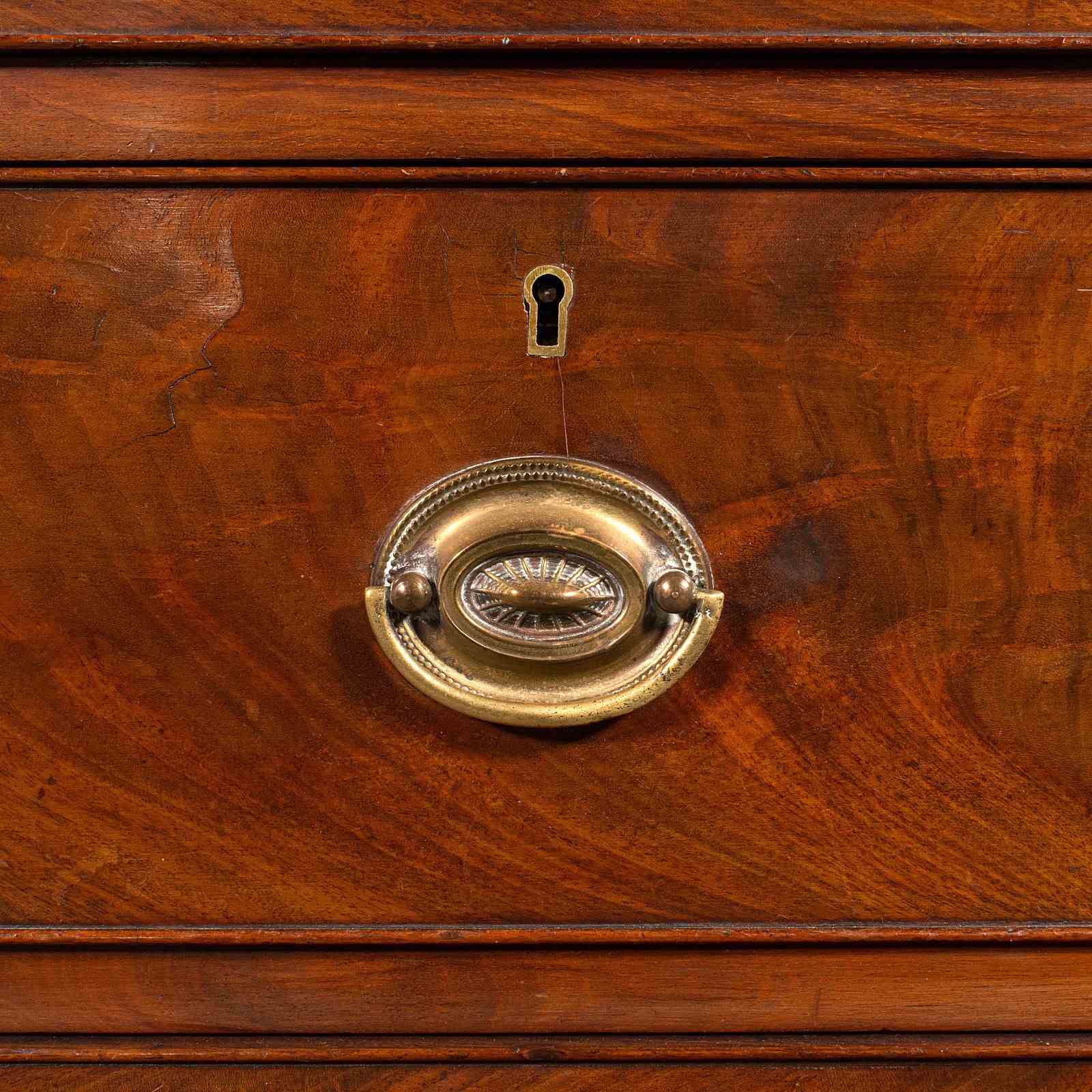 Superb flame mahogany to the drawer fascia – Richly figured grain, displaying a deep, warm patina that enhances its timeless aesthetic