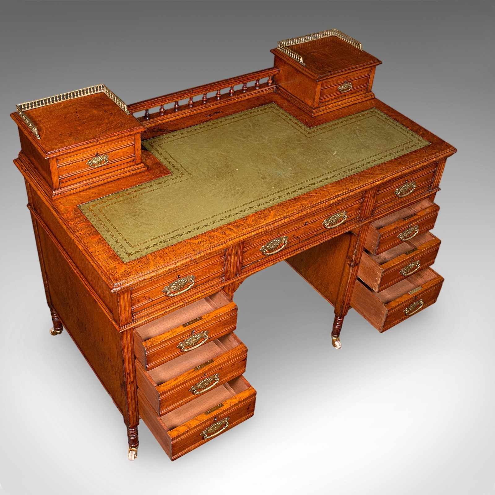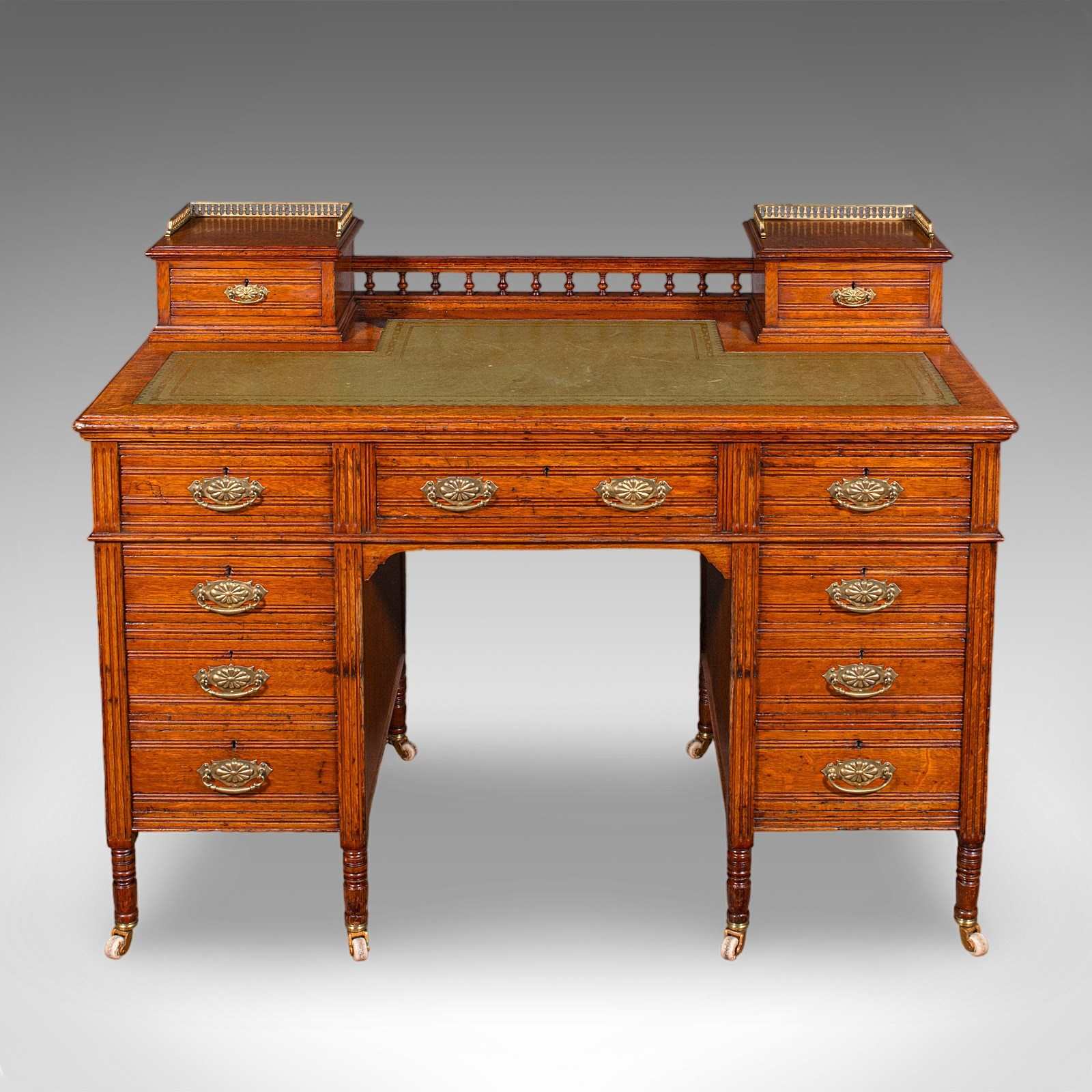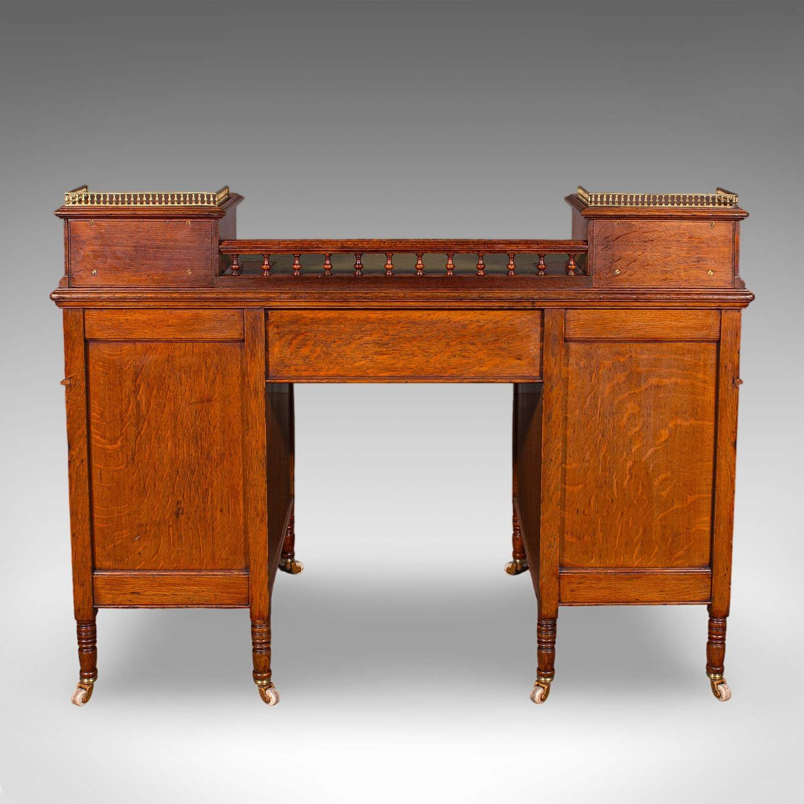 Antique Estate Manager's Kneehole Desk, Scottish, Oak, Country House, Victorian