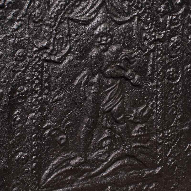This is an attractive antique decorative fire back, with an appealing Neoclassical theme. Delivered ready for the fireplace.