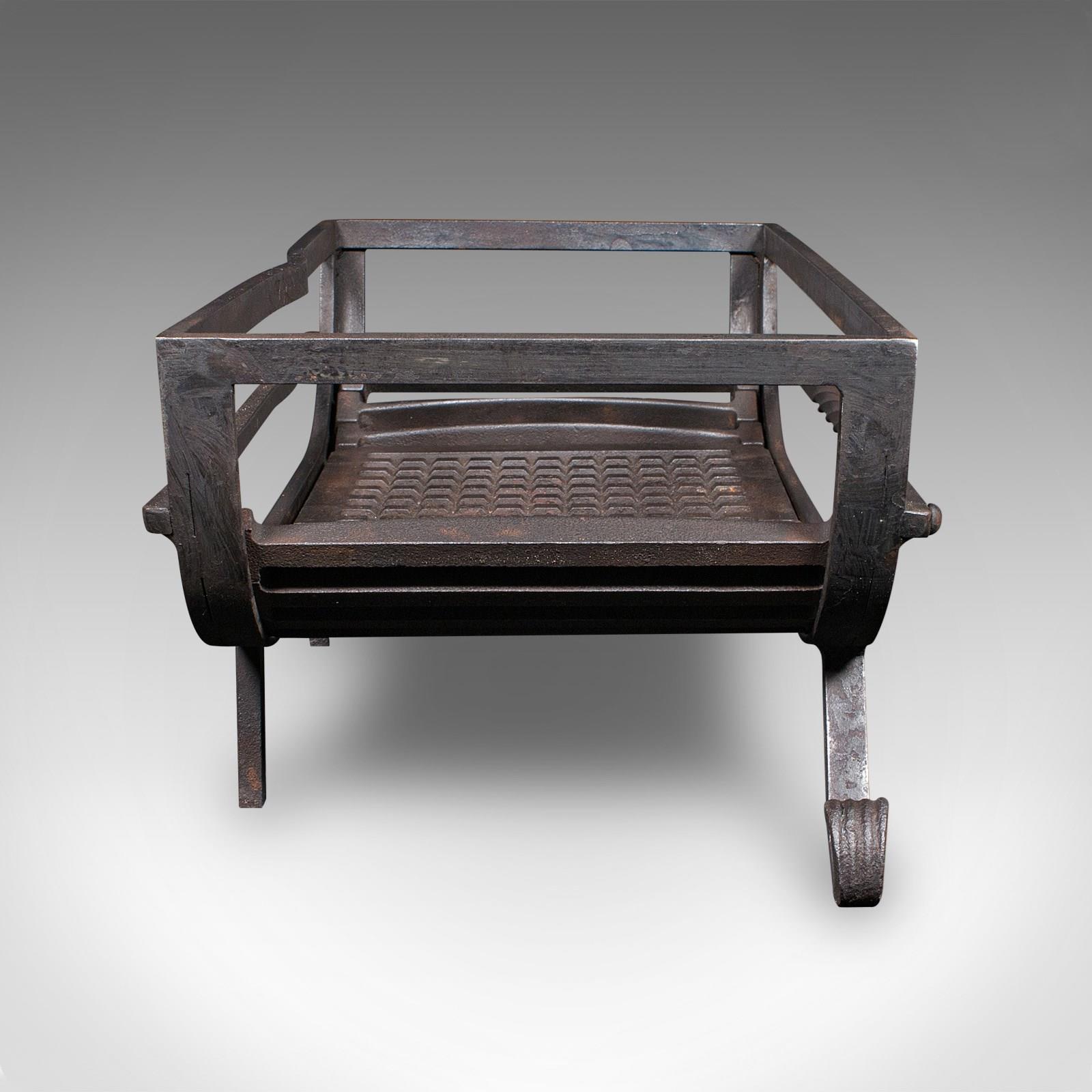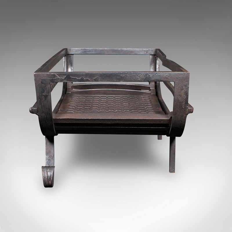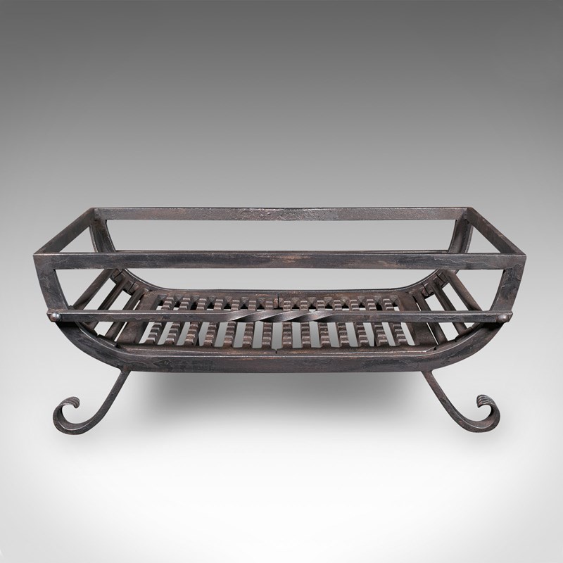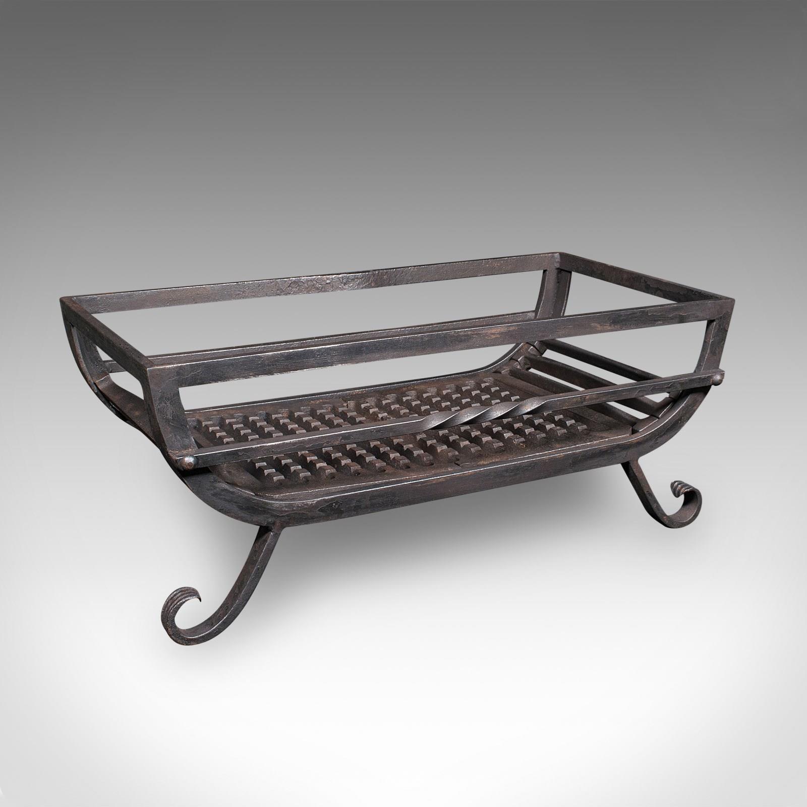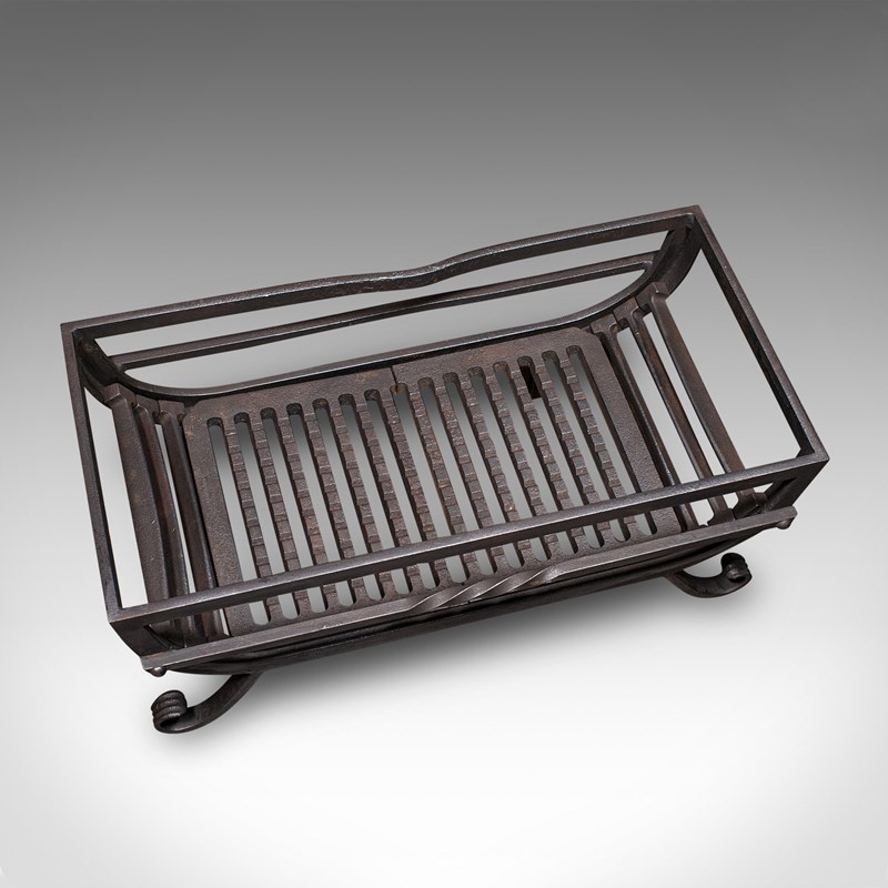 Antique Fire Basket, English, Cast Iron Fireplace Grate, Edwardian, Circa 1910