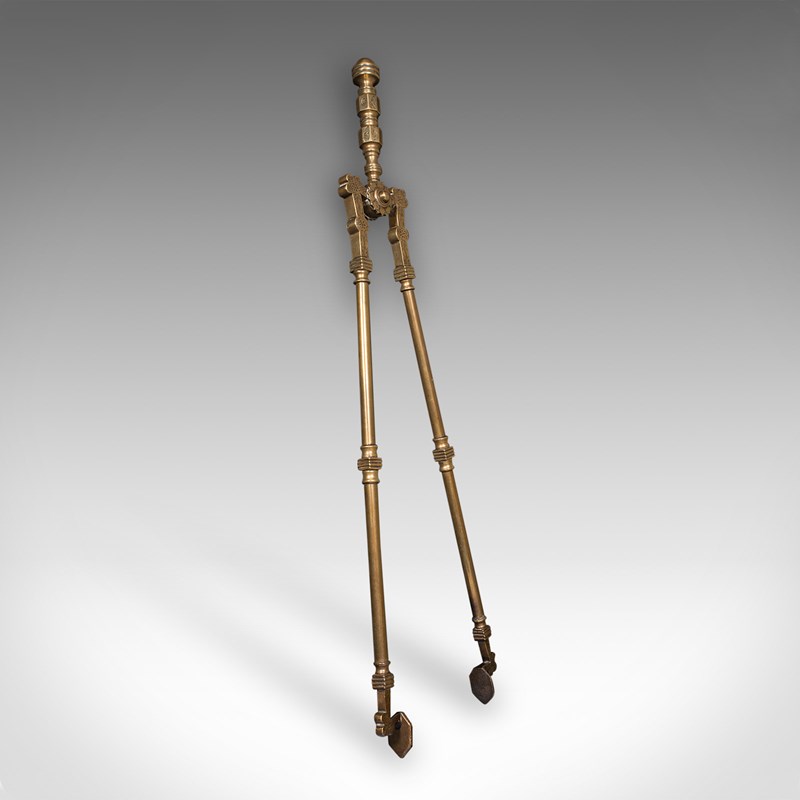 Antique Fire Tool Set, English, Brass, Shovel, Tongs, Poker, Victorian, C.1870