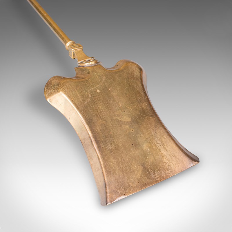 The shovel head shaped for practical fireplace tending, well balanced and robust