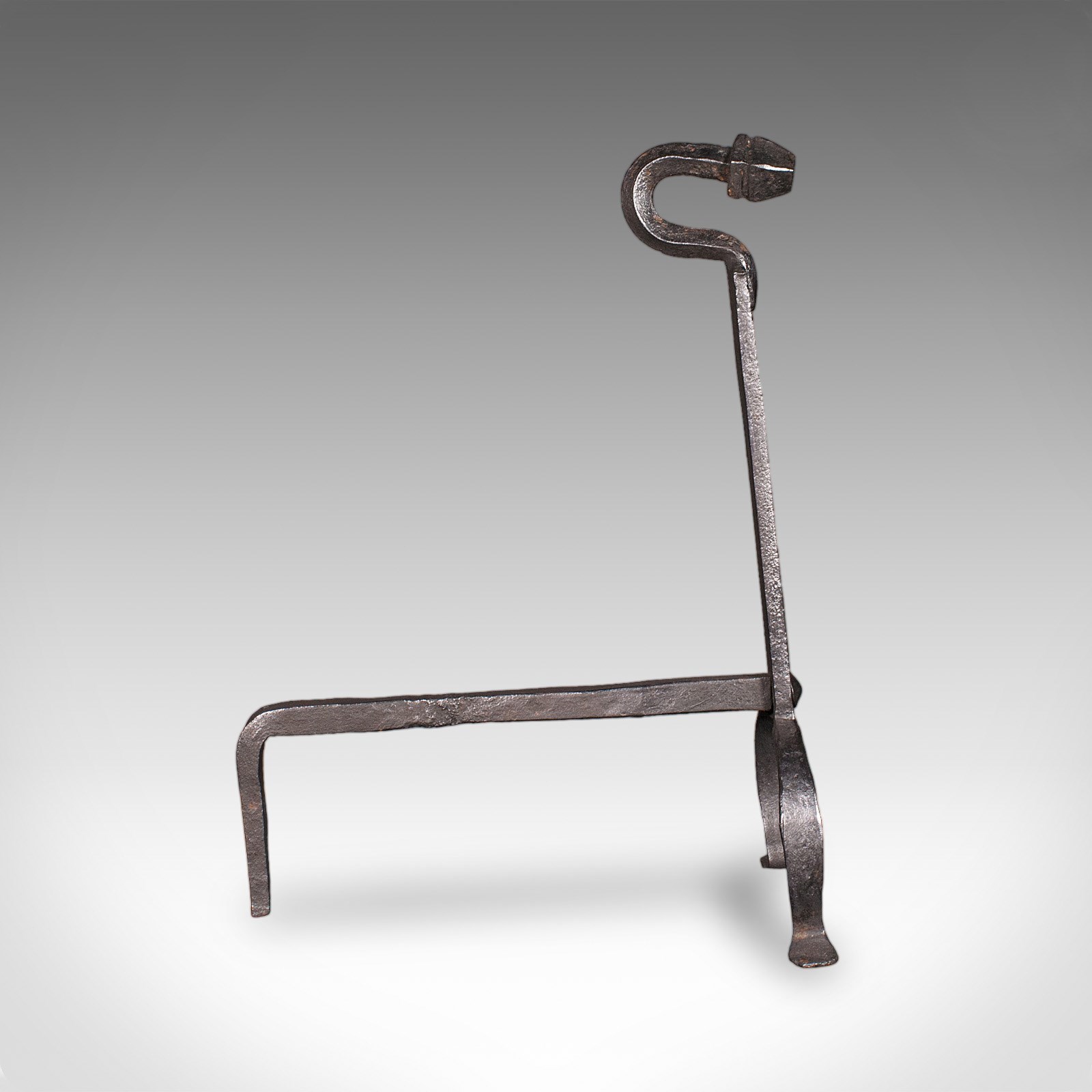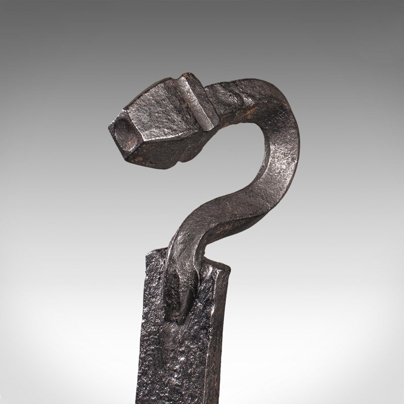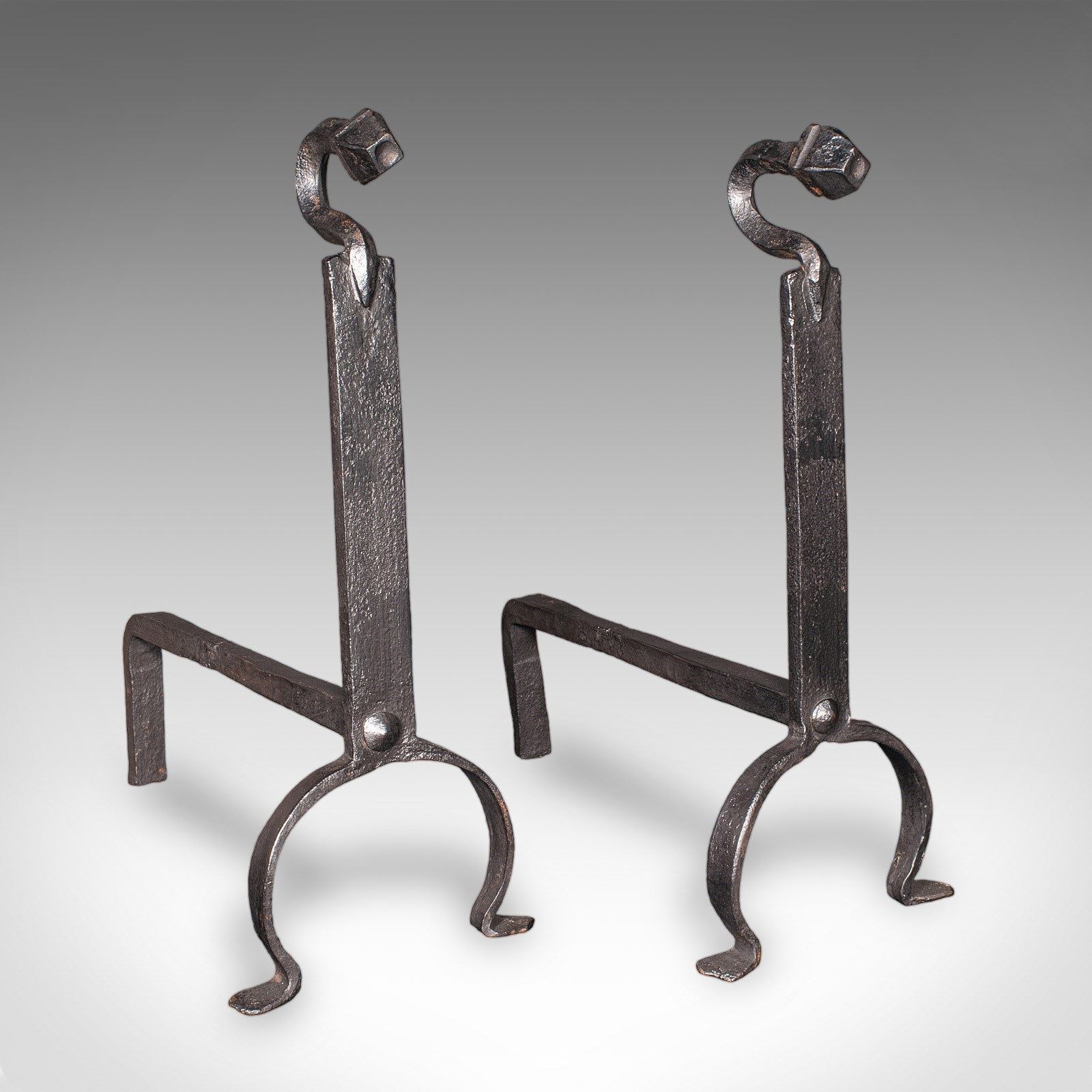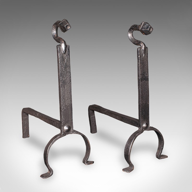 Pair of elegant andirons exhibiting a wonderfully serpentine swan-neck form