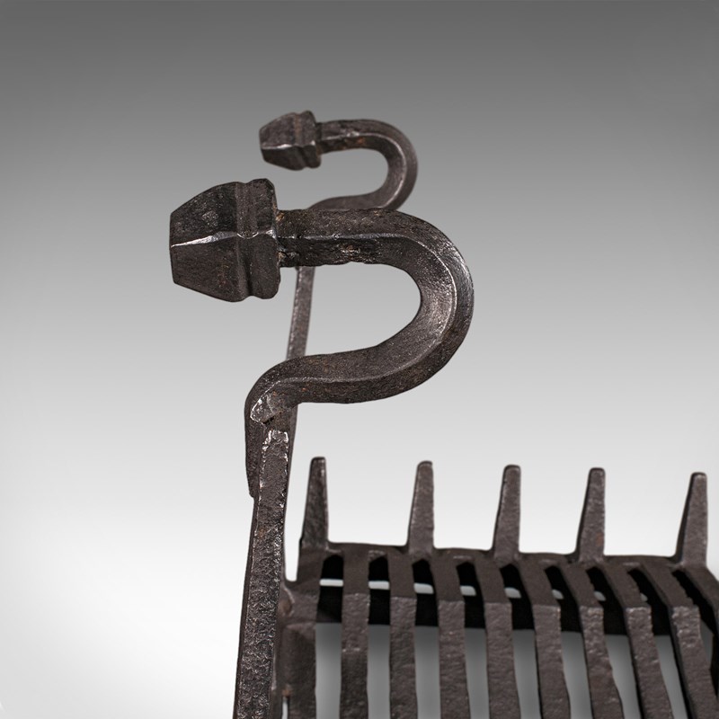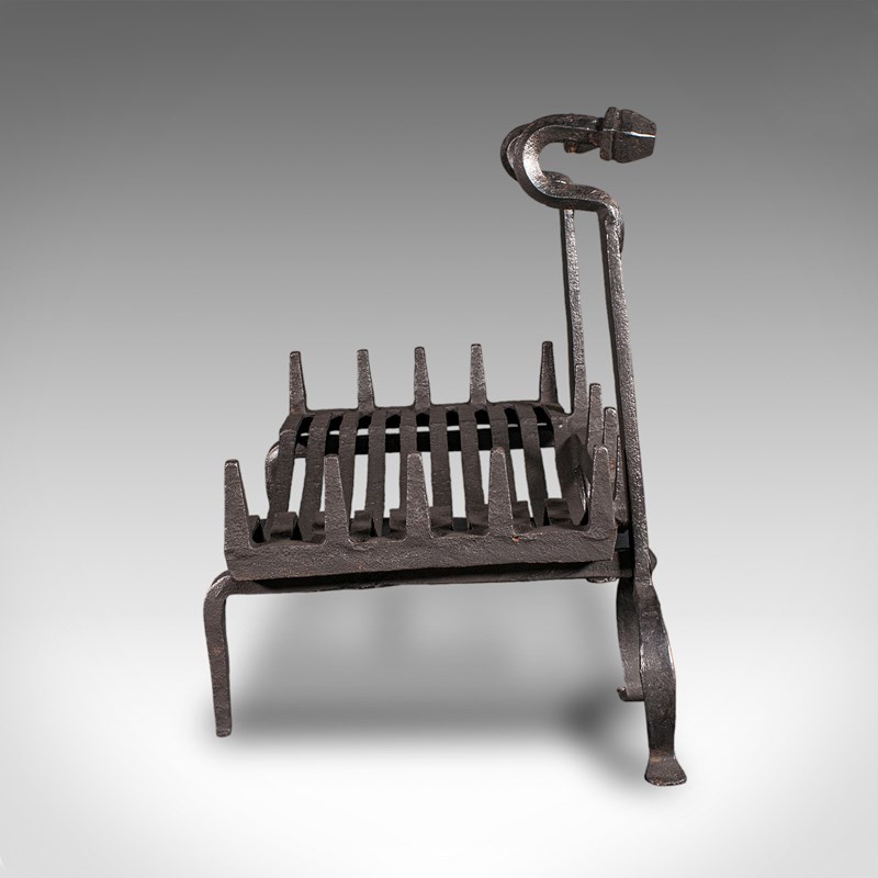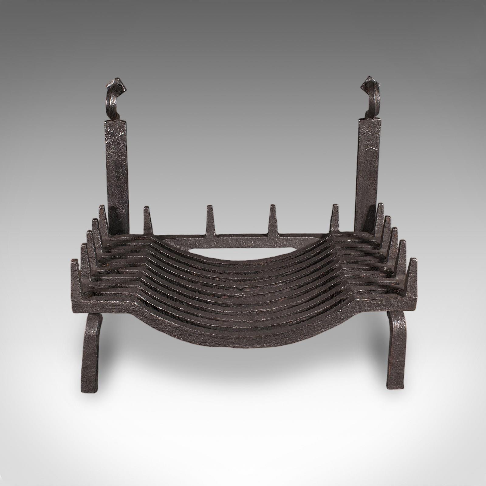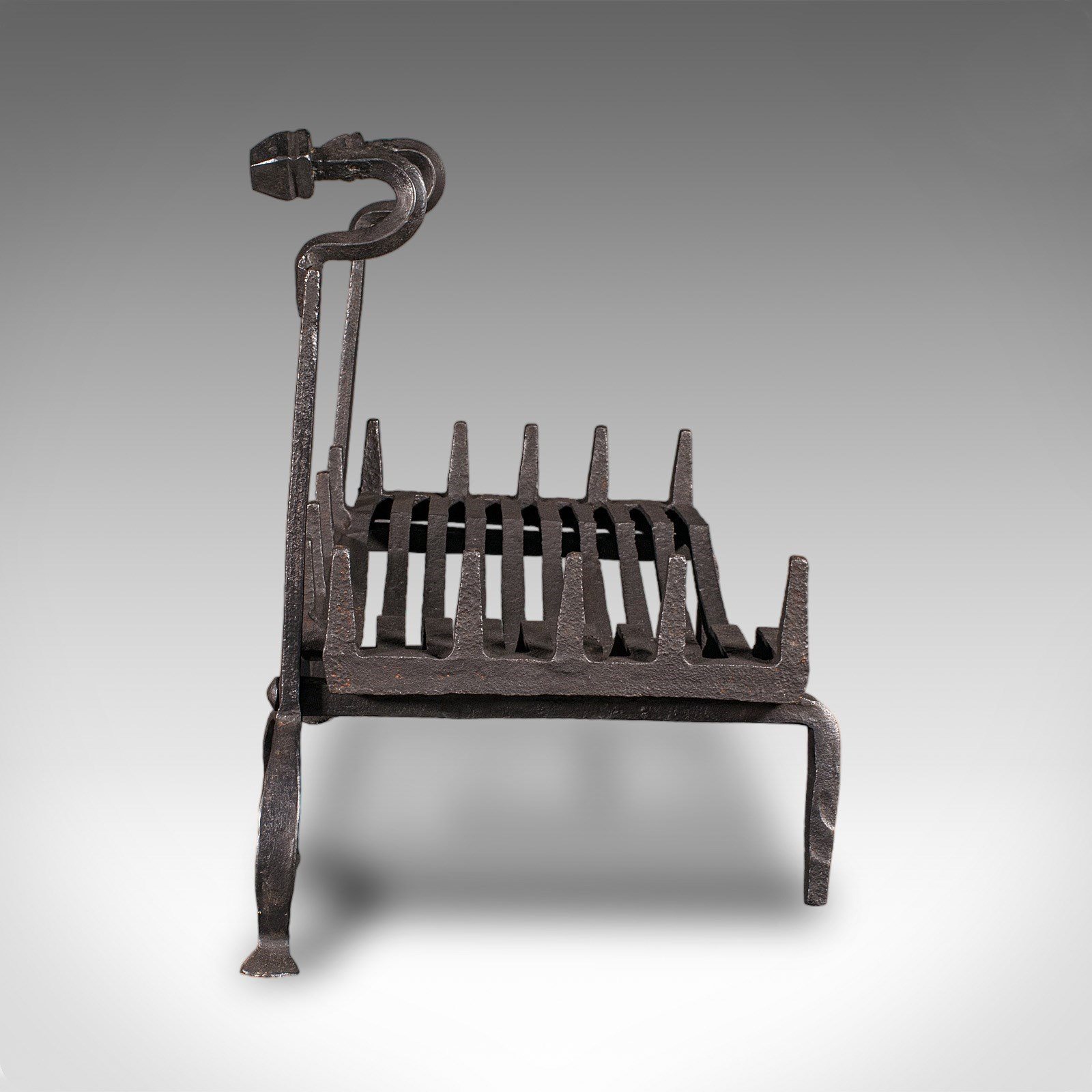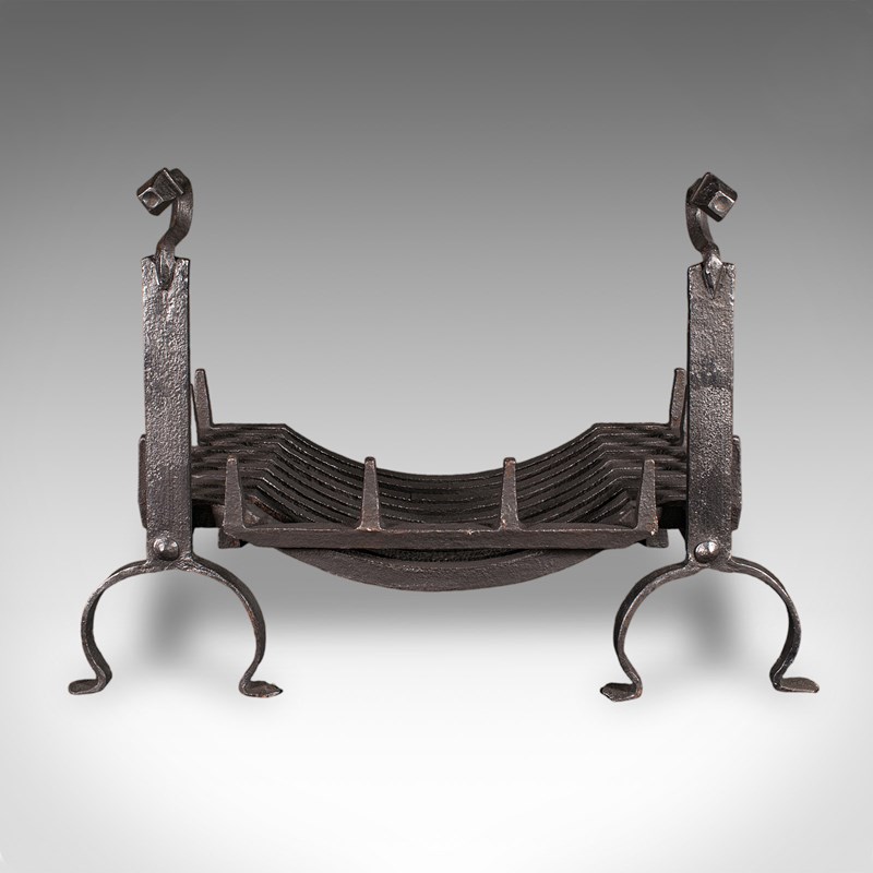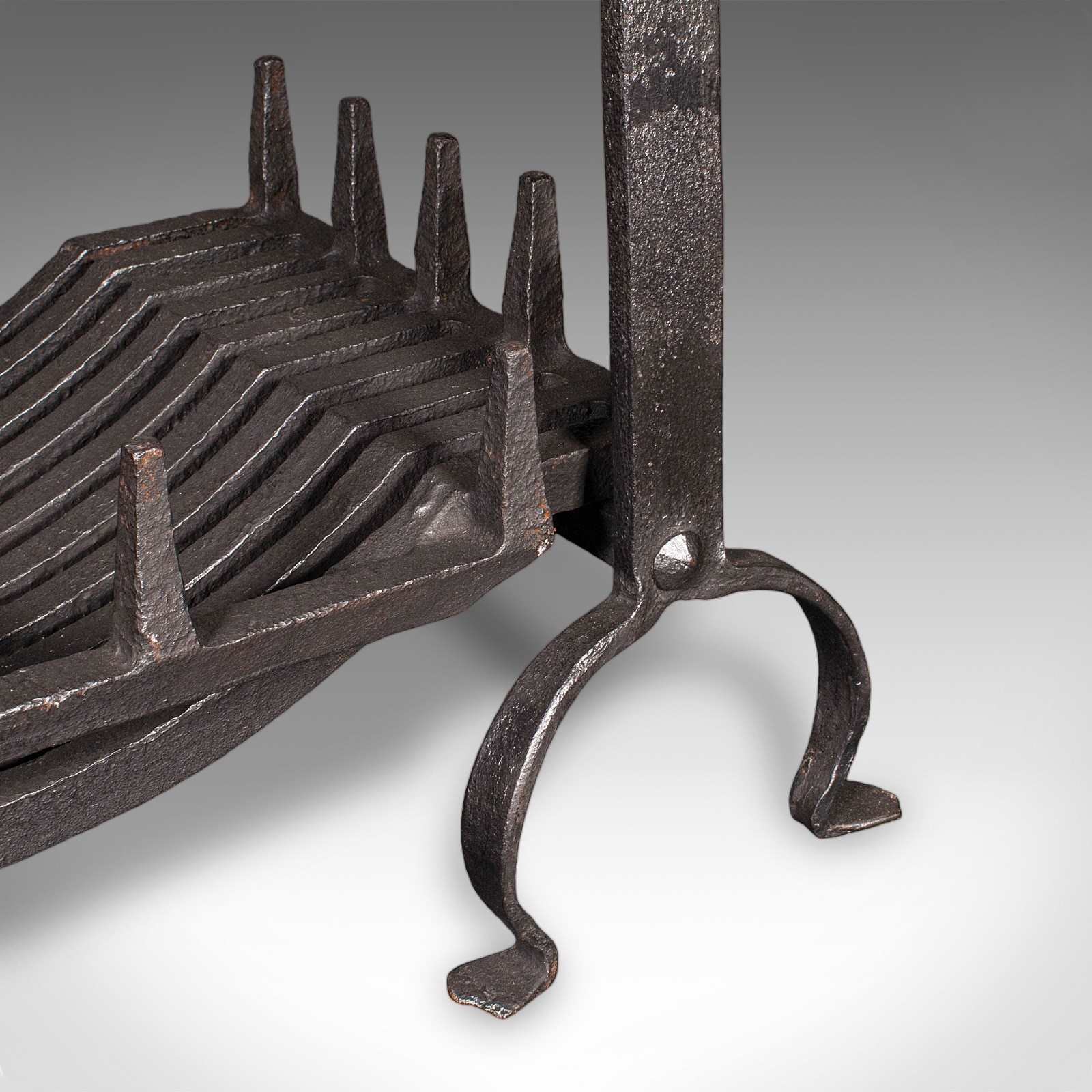 Antique Fireplace Set, English, Wrought Iron, Fire Basket, Andirons, Victorian
