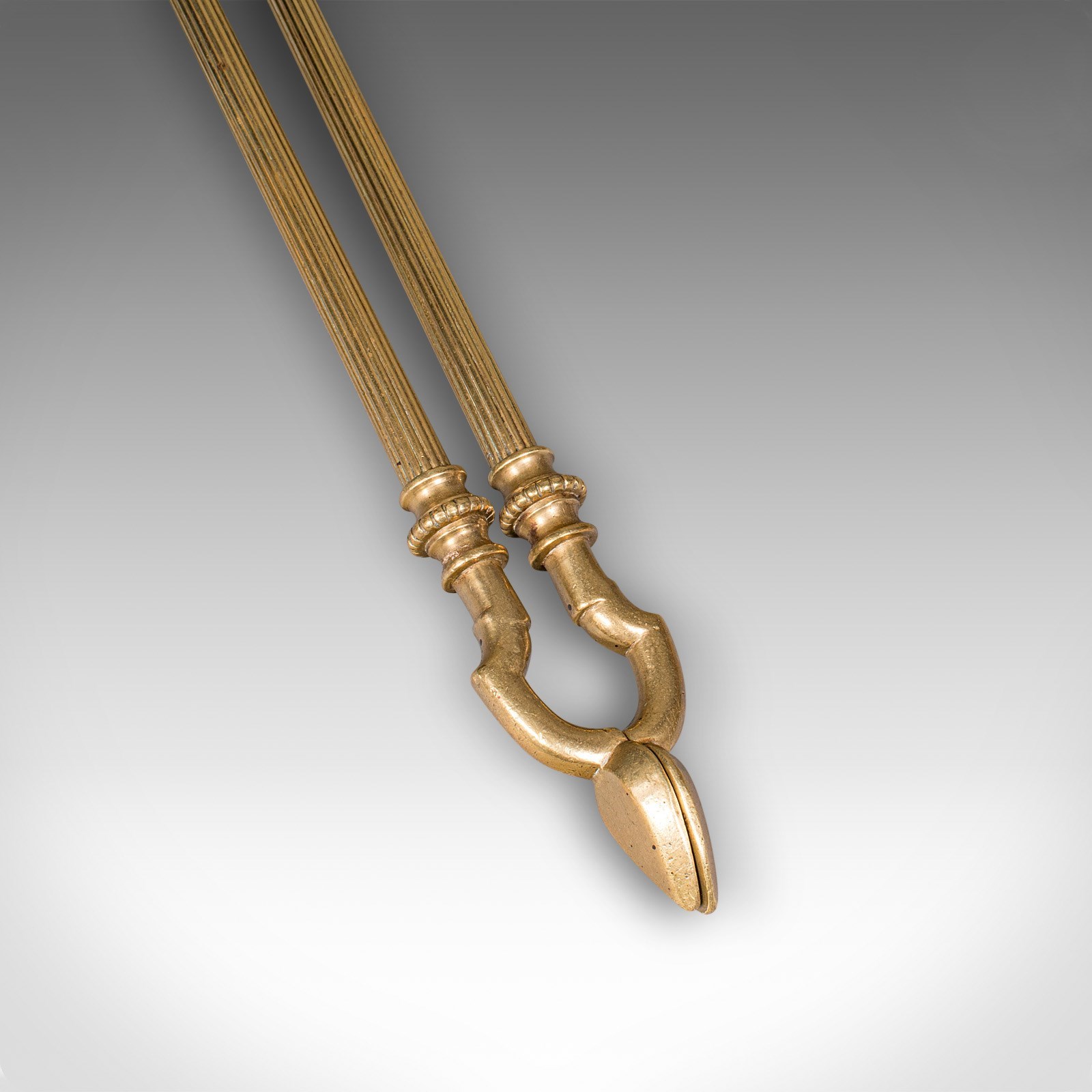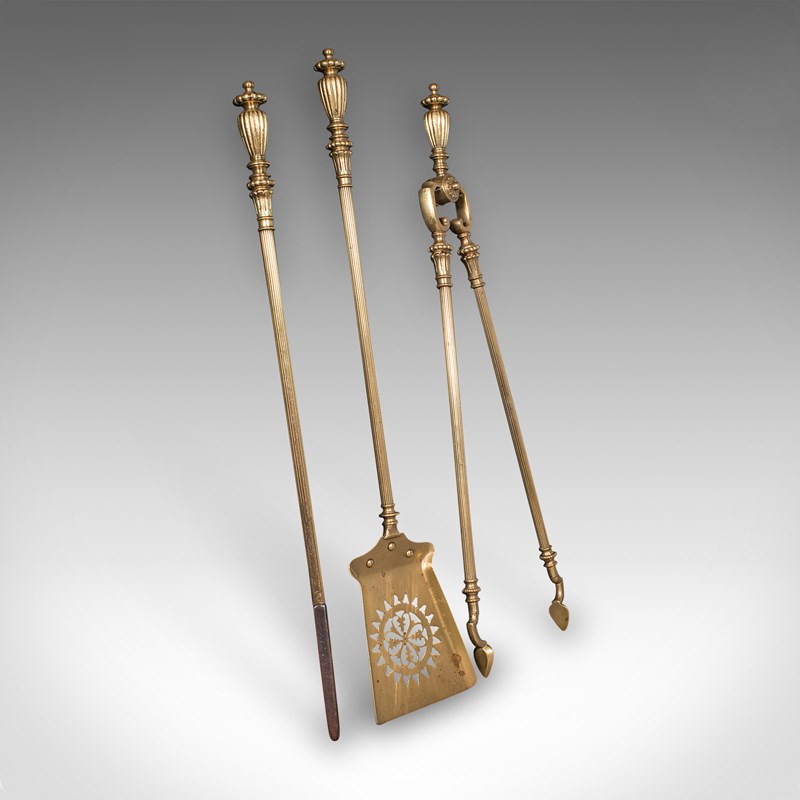 Antique Fireplace Tool Suite, English, Brass, Shovel, Poker, Tongs, Victorian