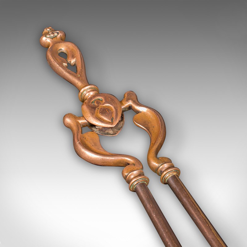 Antique Fireside Companion Set, French Bronze Fire Tools, Art Nouveau, Victorian