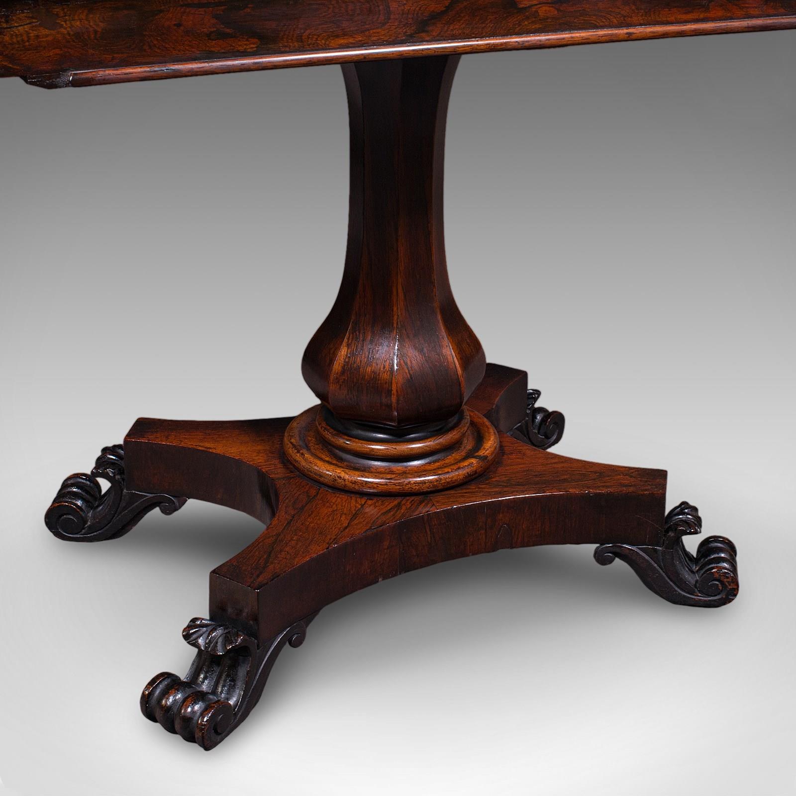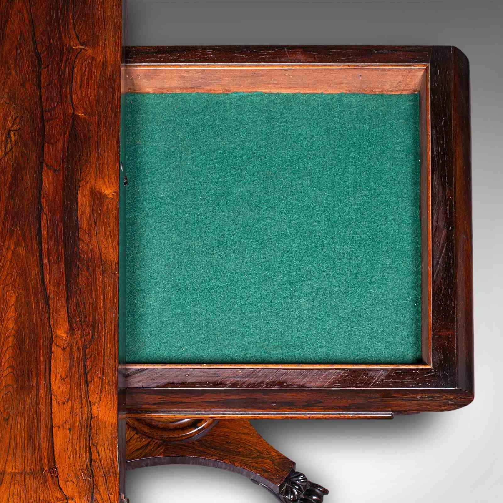 This is an antique fold-over card table. An English, rosewood games or console table, dating to the early Victorian period, circa 1840.