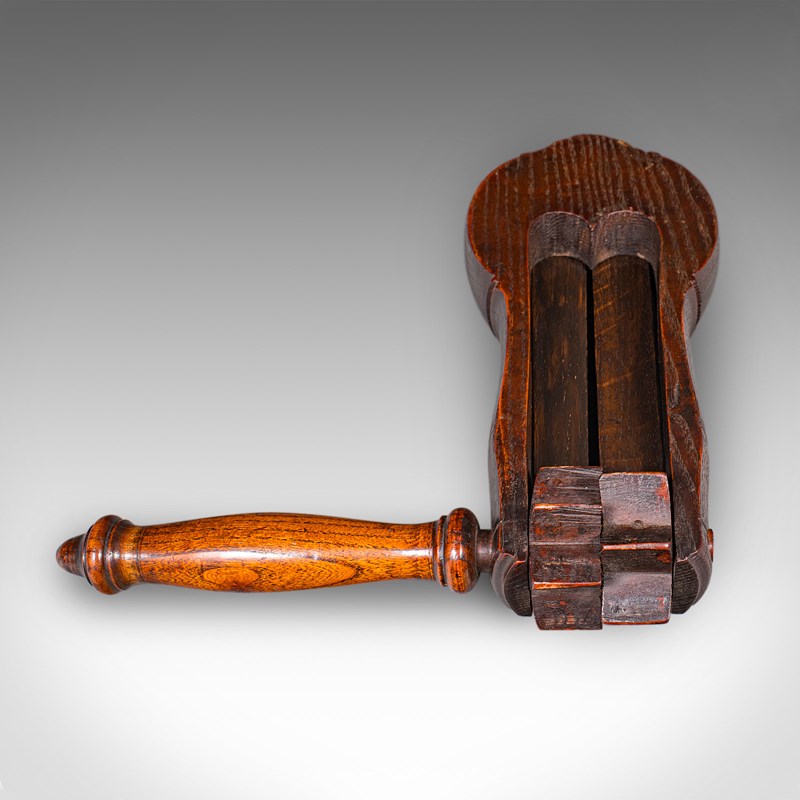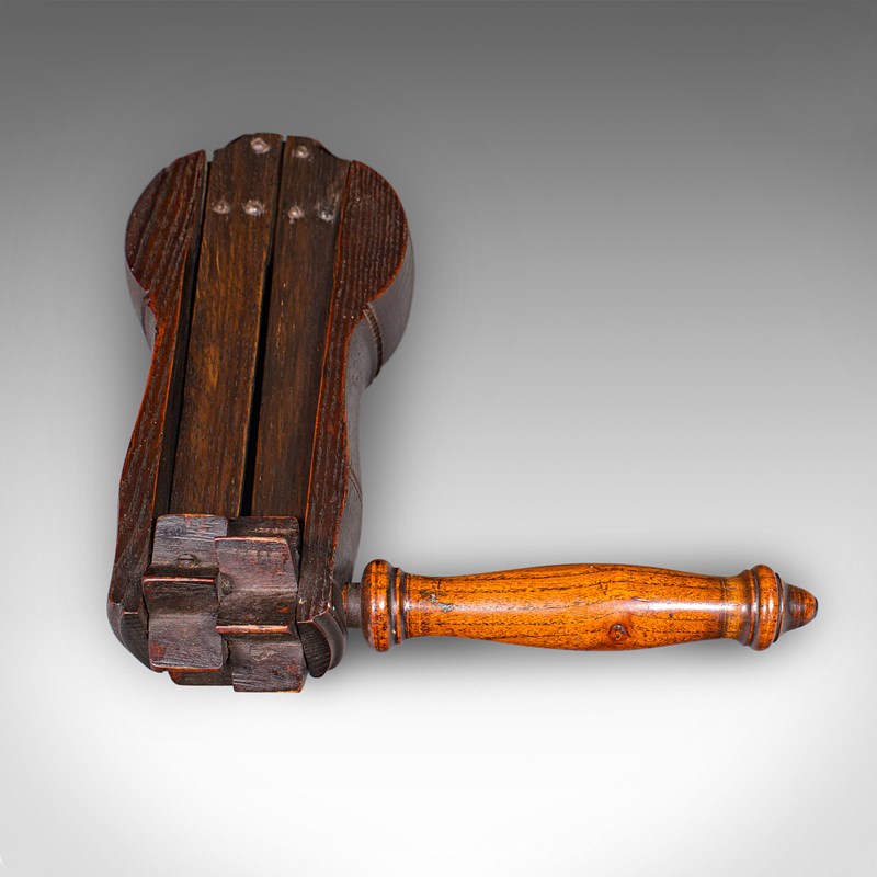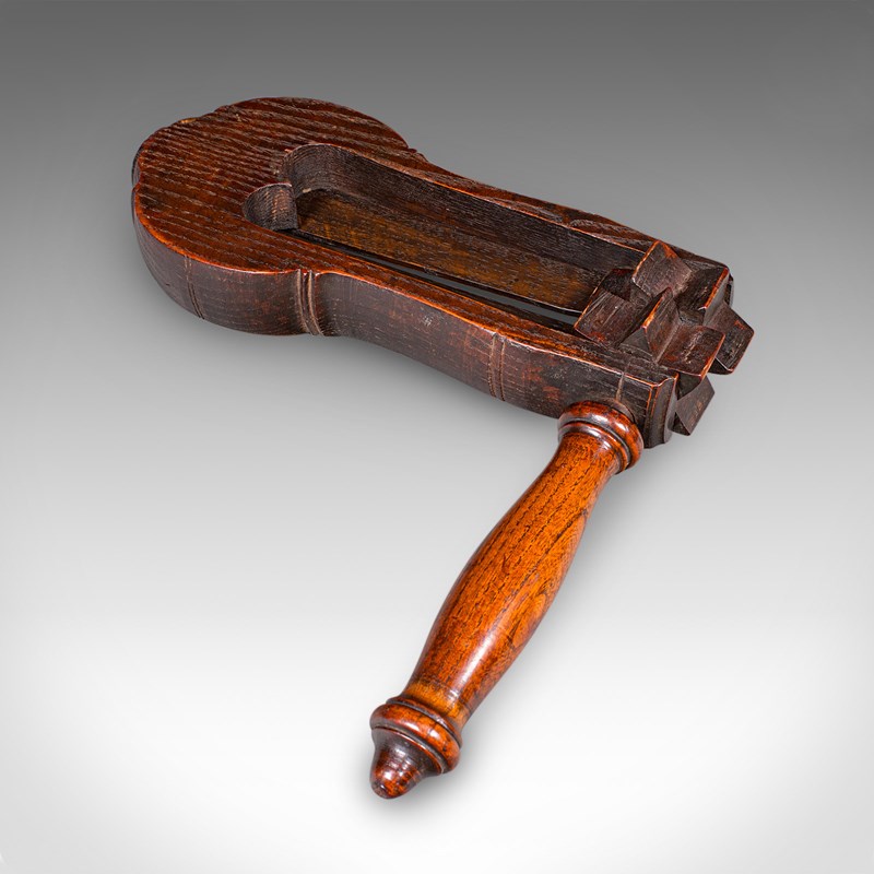 This is an antique football rattle. An English, elm and oak signalling ratchet, dating to the Victorian period, circa 1880. A nostalgic piece of sporting memorabilia, evoking the excitement of late 19th century match days.