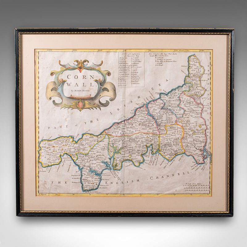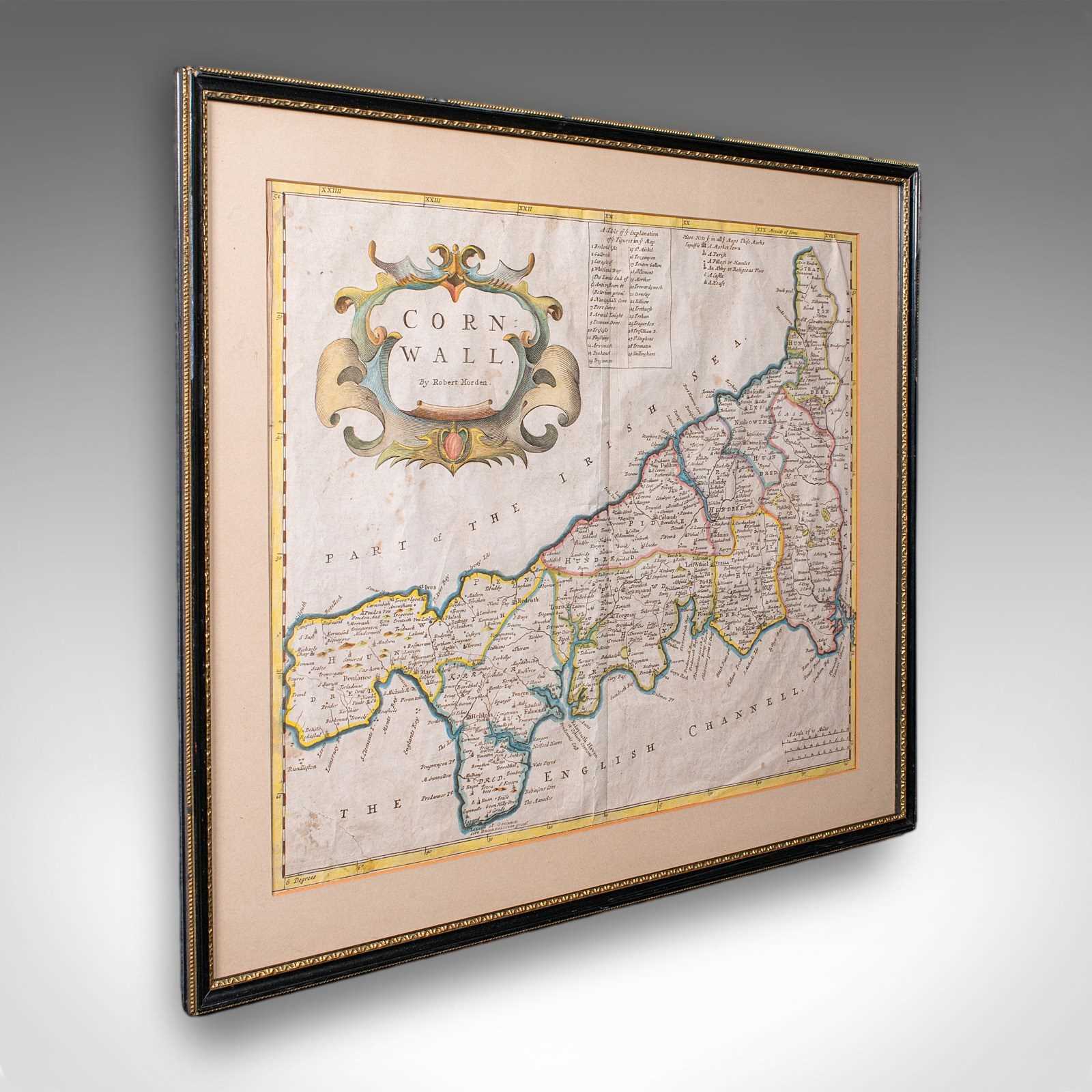 Antique Framed Cornwall Map, English, Atlas Cartography, Robert Morden, C.1700