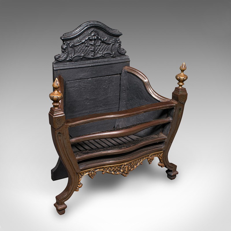A handsome and appealing late-Victorian fire basket, this example combines cast iron strength, steel durability, and brass ornamentation in perfect harmony. A tasteful addition to the country house fireplace, townhouse hearth, or traditional reception room, celebrating English design heritage with enduring style. Delivered ready for the home.