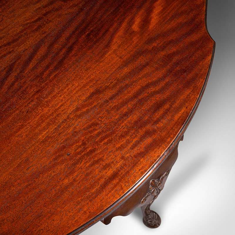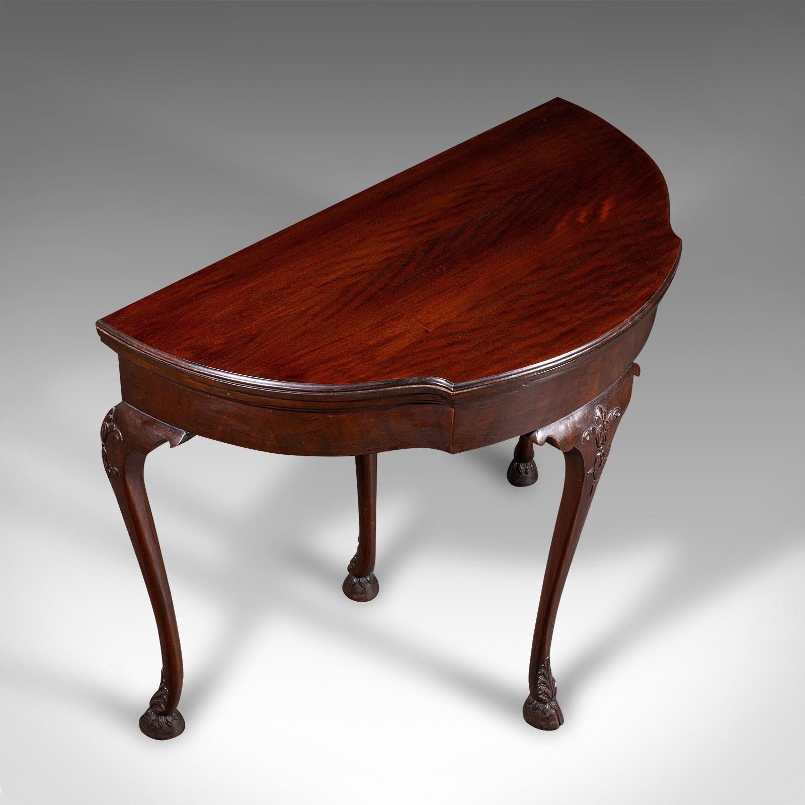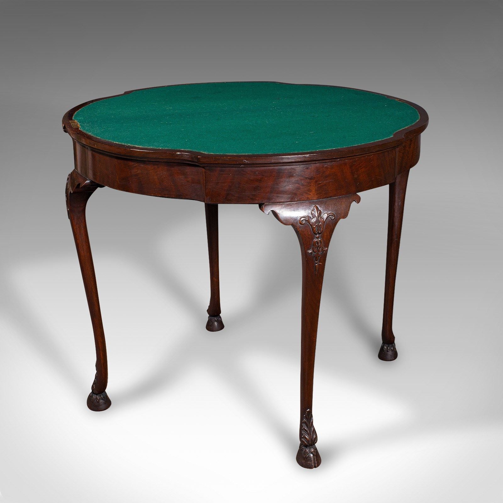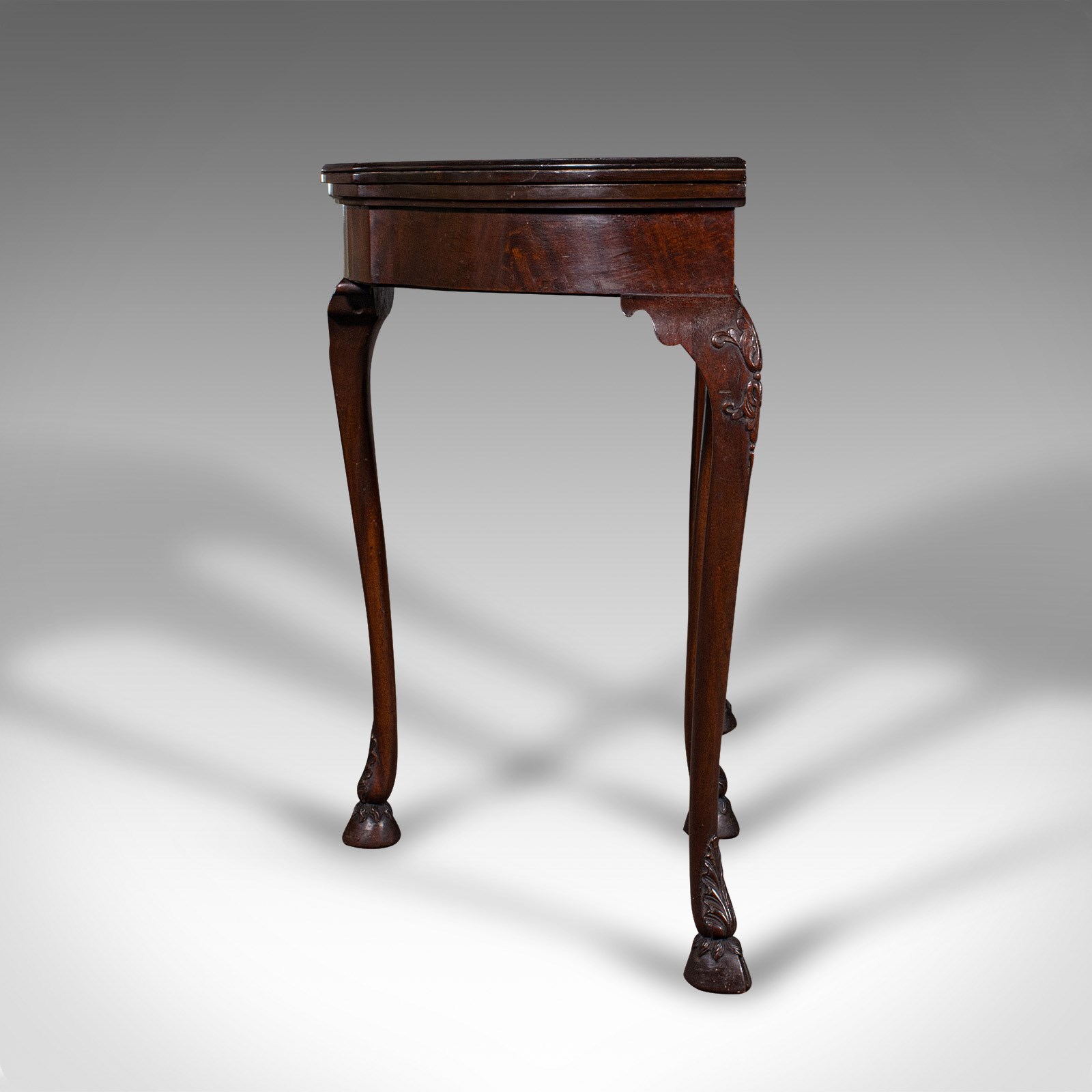This is an antique Georgian revival card table. An English, mahogany fold over games table, dating to the late Victorian period, circa 1890.