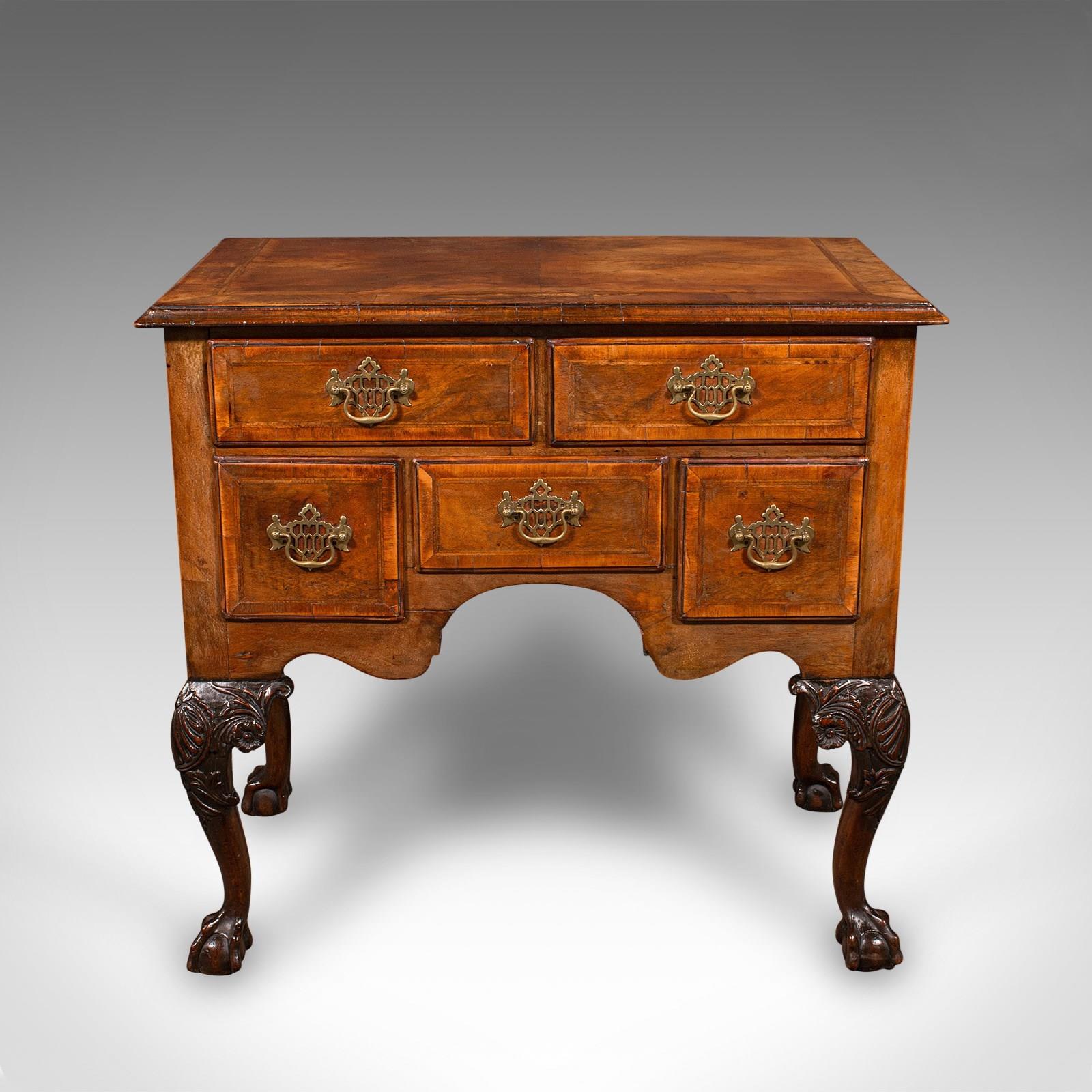 This is an antique Georgian Revival lowboy. An English, walnut hall or side table, dating to the Edwardian period, circa 1910.