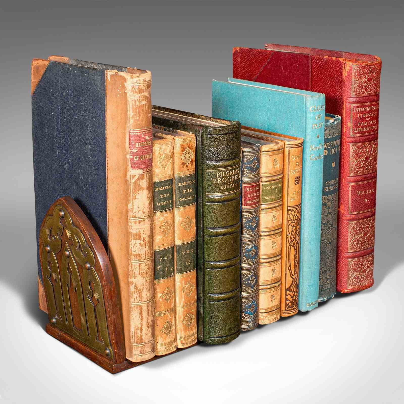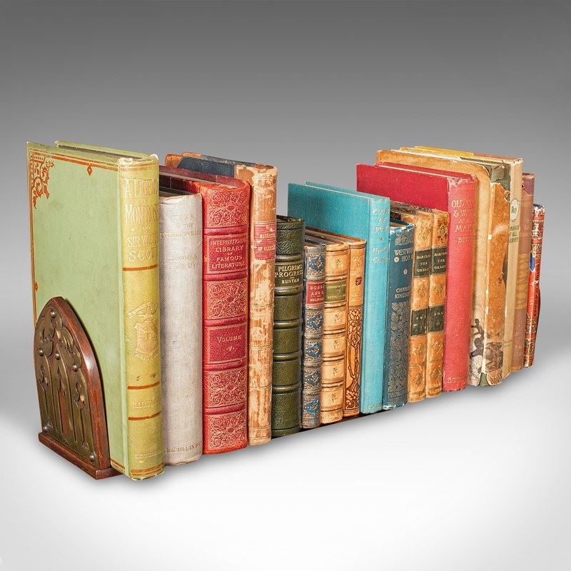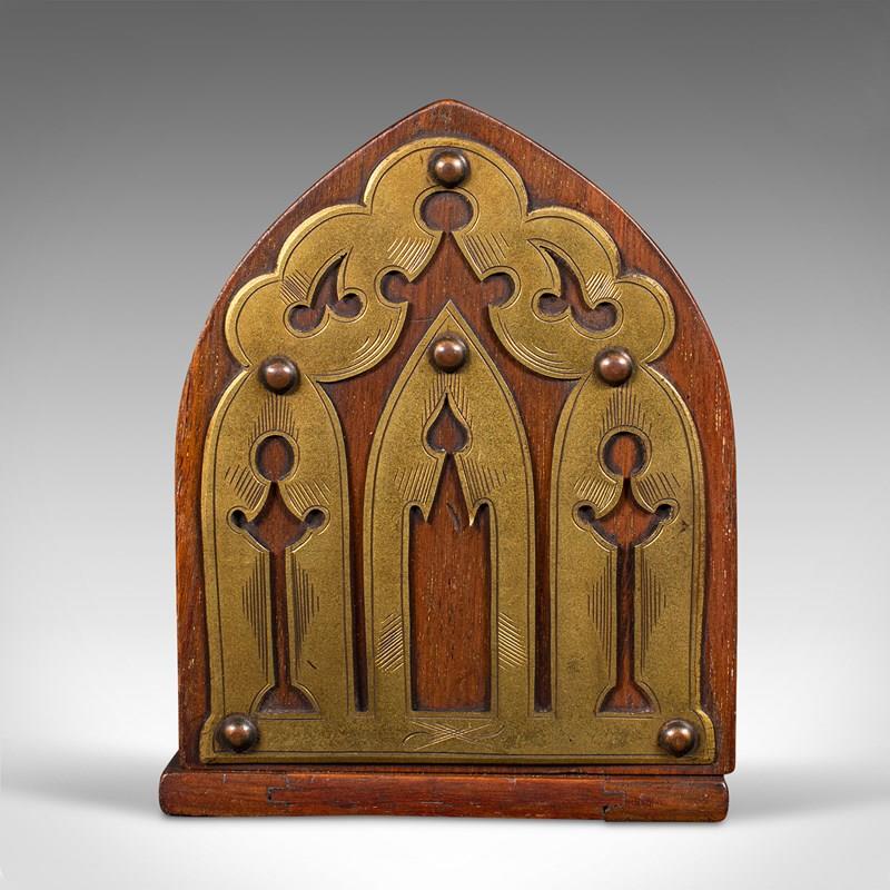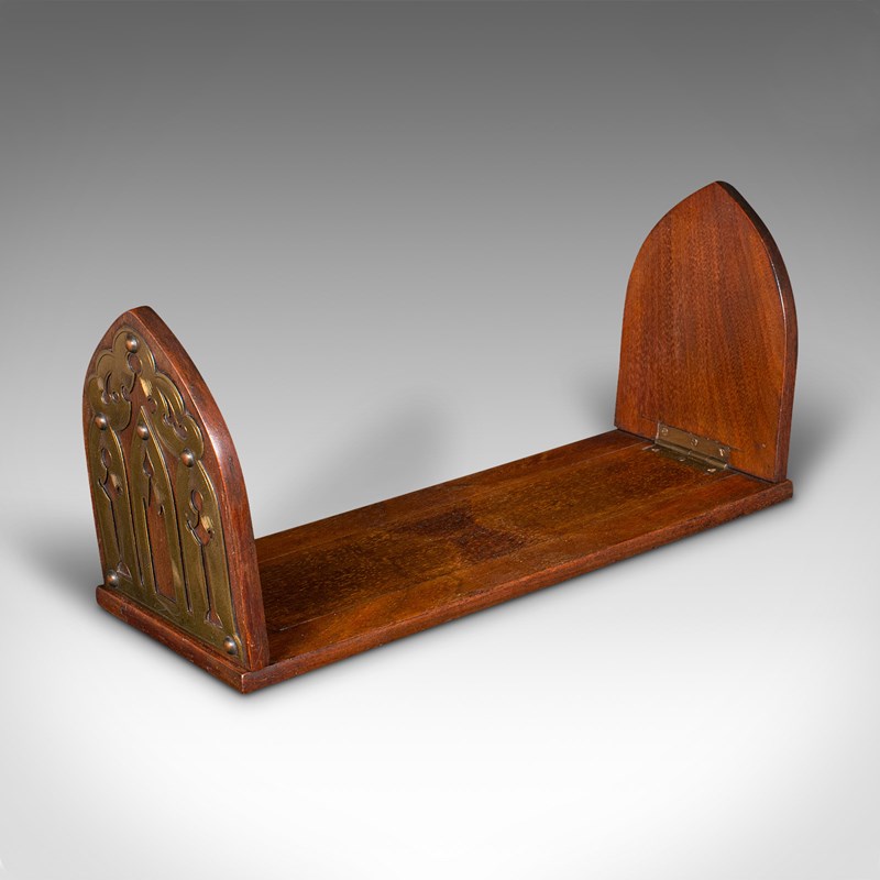 This is a delightful antique Gothic revival book slide, with eye-catching brass caps and extending to further its appeal. Delivered ready for the home.