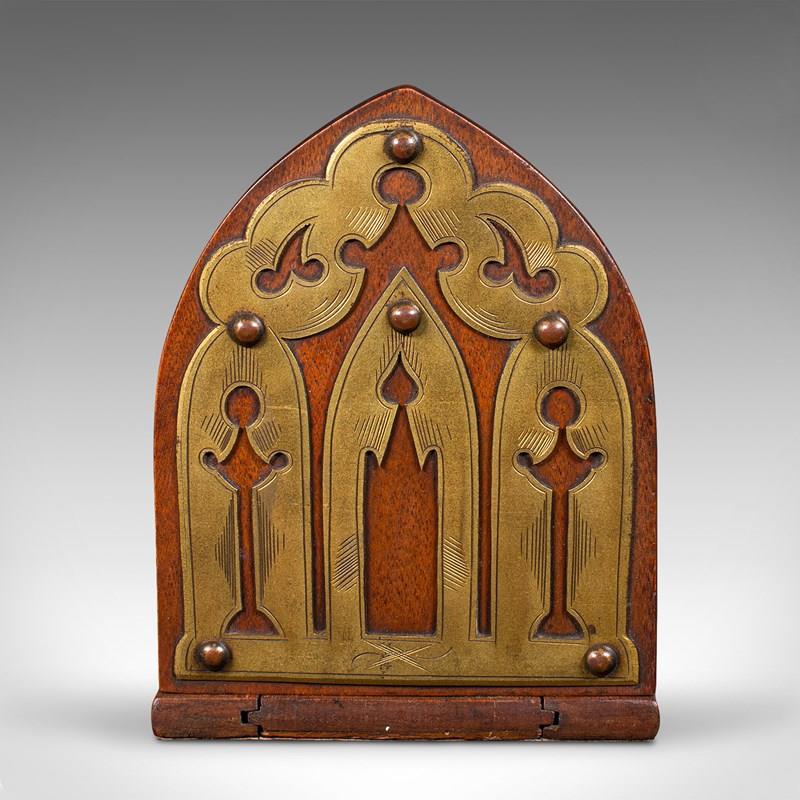 Antique Gothic Revival Book Slide, English Walnut, Extending Bookrest, Victorian