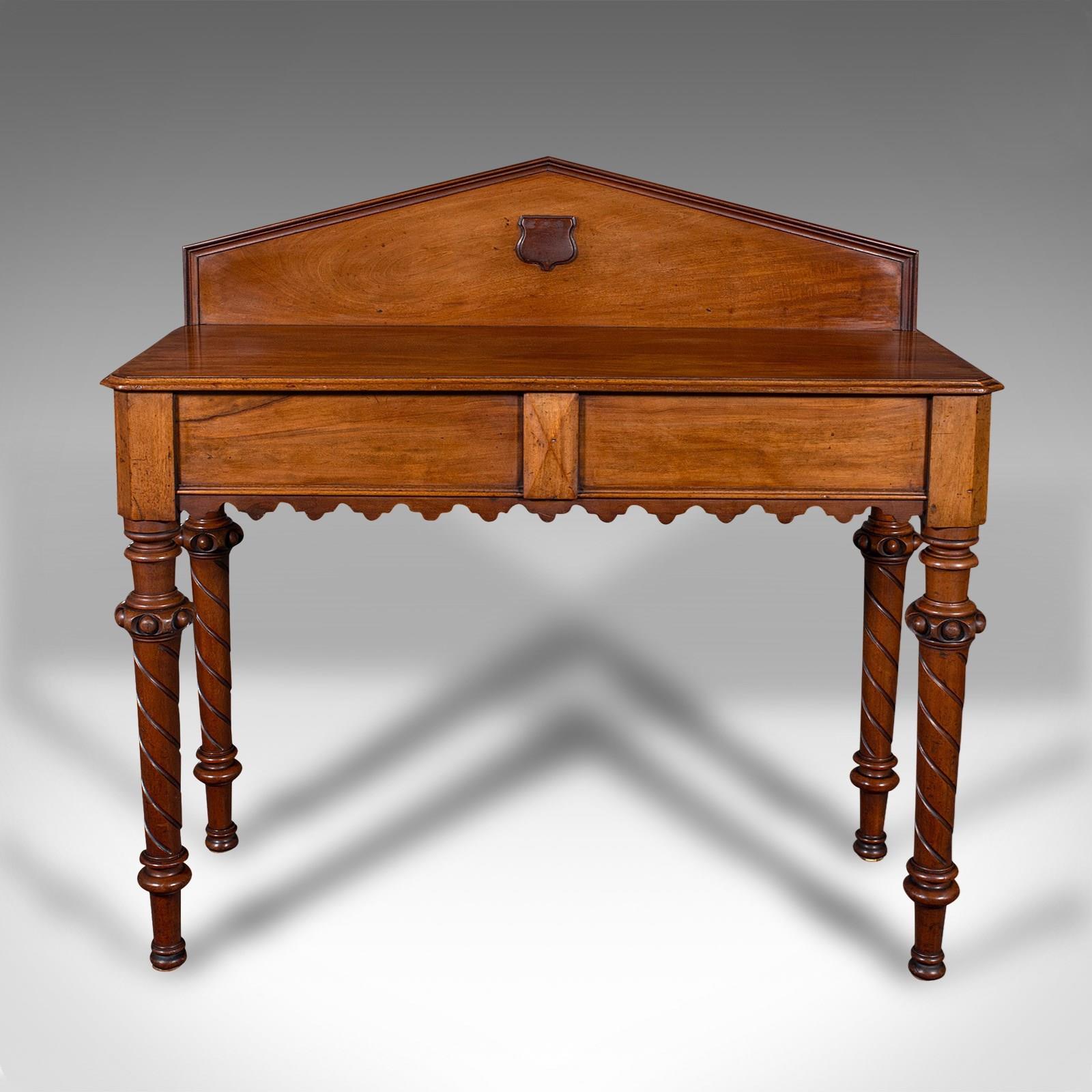 This is an antique Gothic revival hall table. A Scottish, mahogany console, side table or buffet server, dating to the Victorian period, circa 1870.