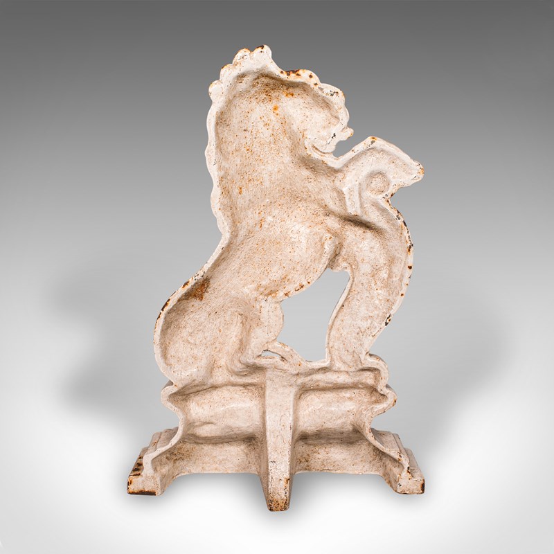 Antique Heraldic Lion Doorstop, English, Cast Iron Door Keeper, Victorian, 1890