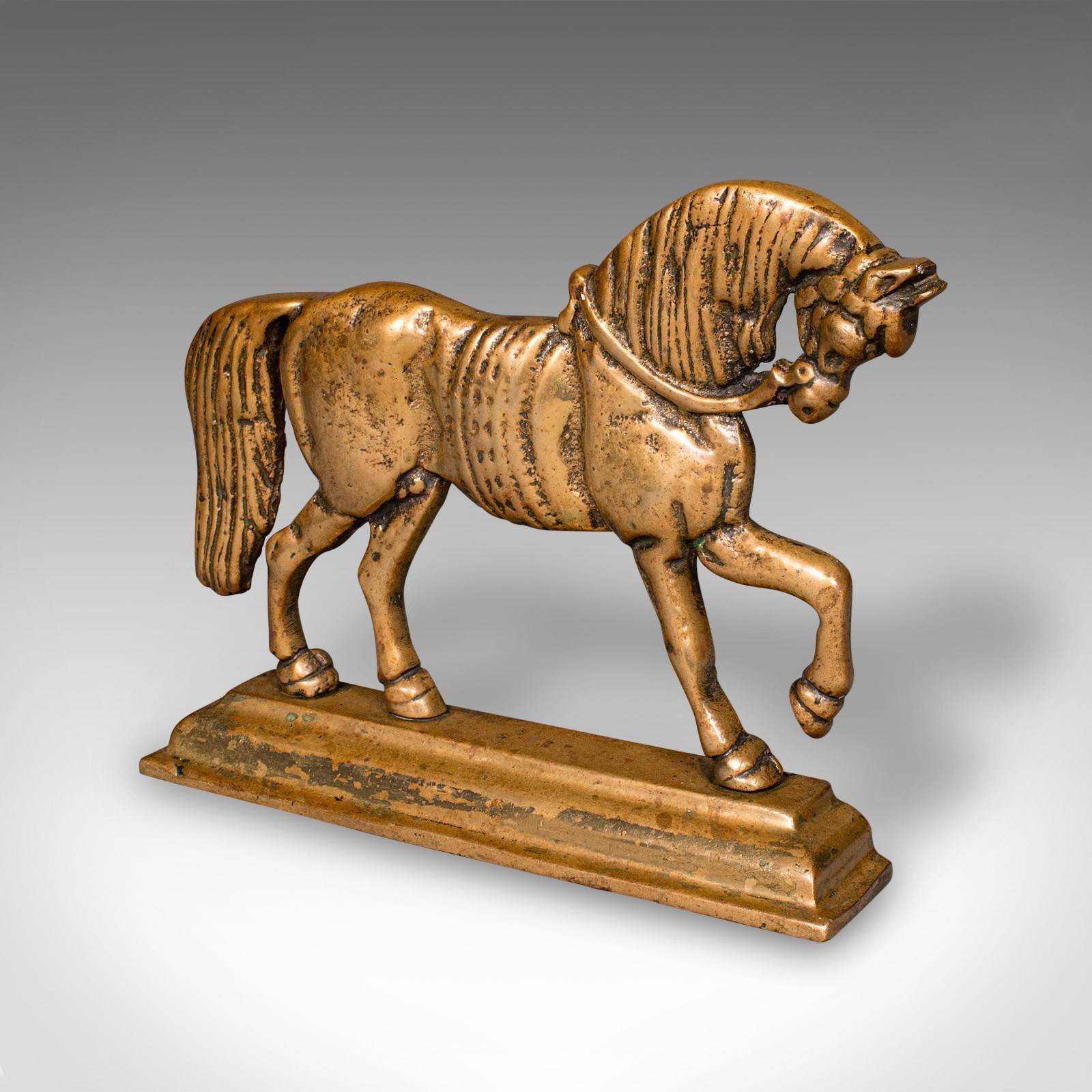 Antique Horse Doorstop, English, Brass, Equine Door Keeper, Victorian, C.1880