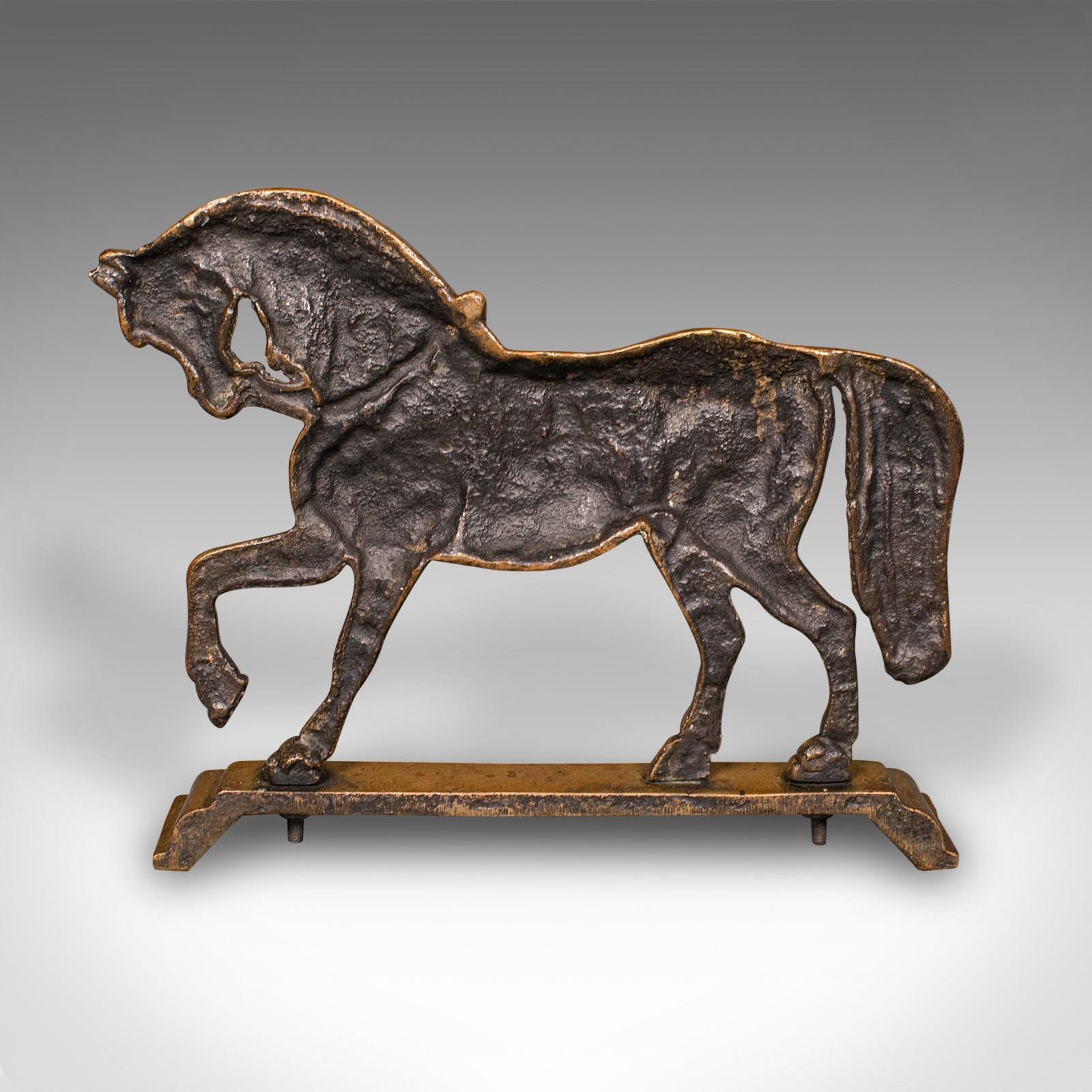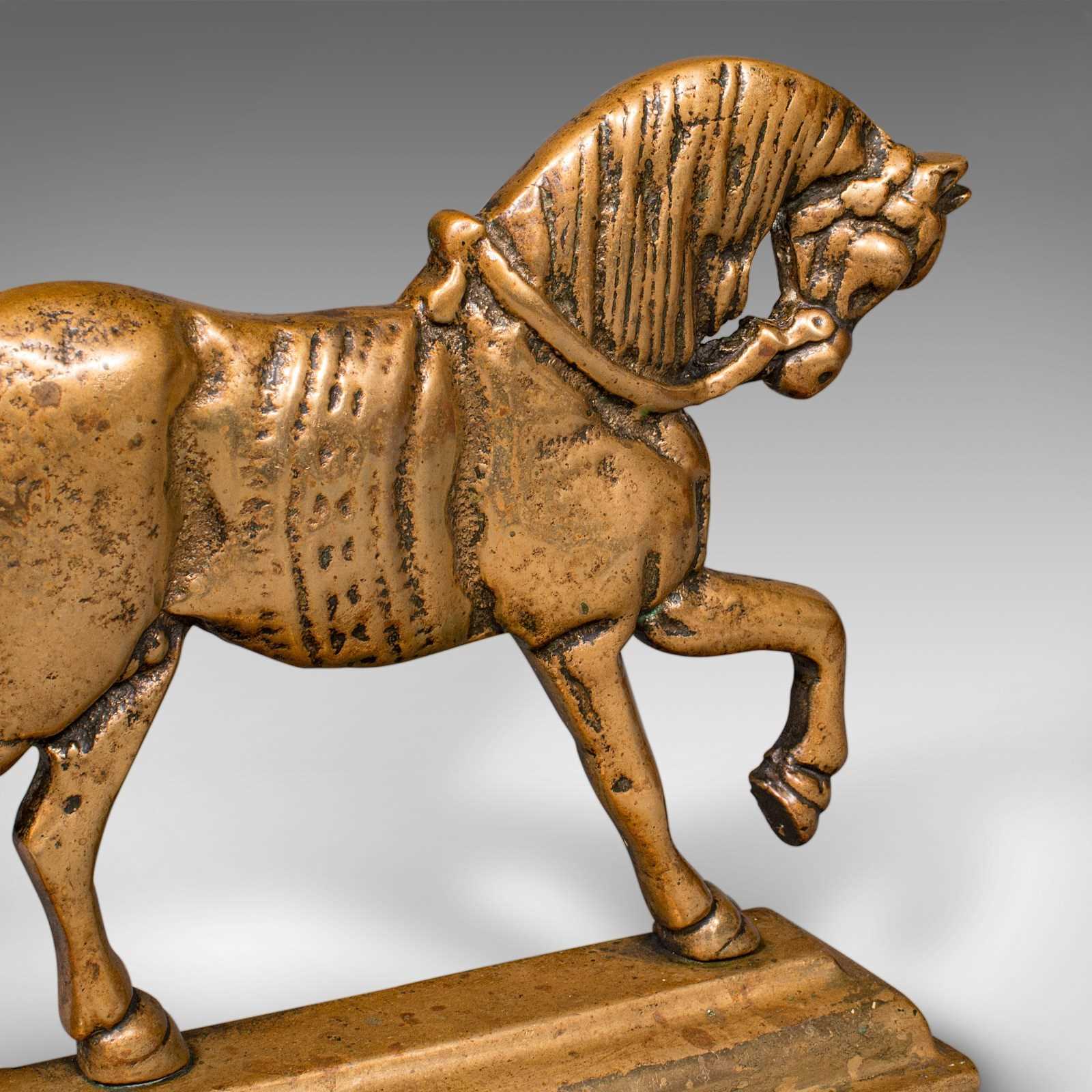 This is an antique horse doorstop. An English, brass equine door keeper, dating to the late Victorian period, circa 1880. A charming example of Victorian domestic décor, combining function with equestrian style.