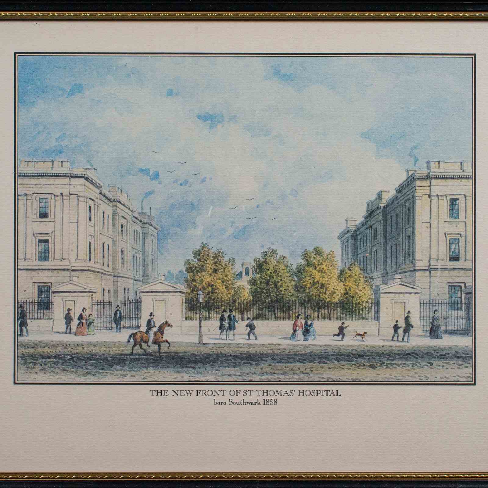 Charming period engraving depicting St Thomas' Hospital, London