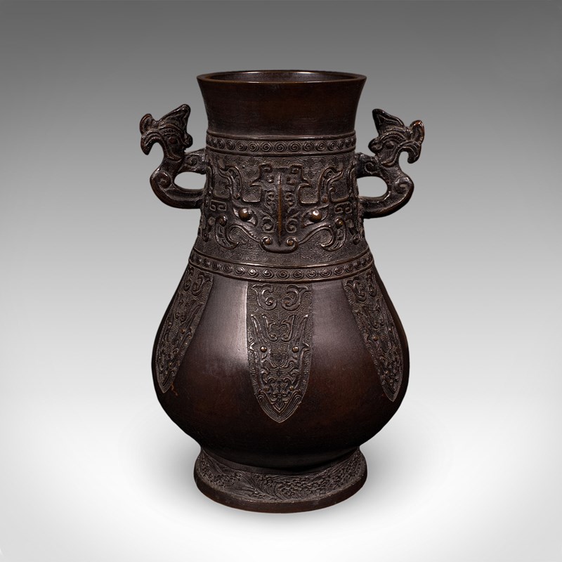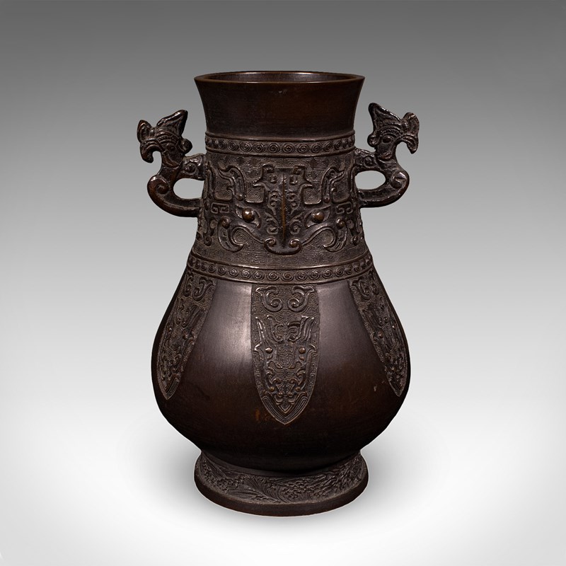 Antique Hu Vase, Oriental, Bronze, Flower Pot, Display Urn, Victorian, C.1880