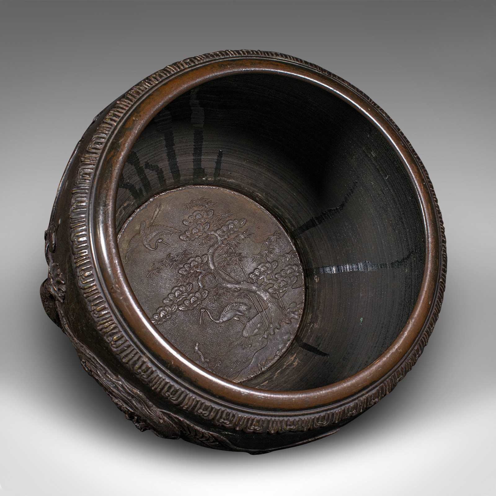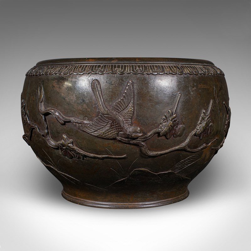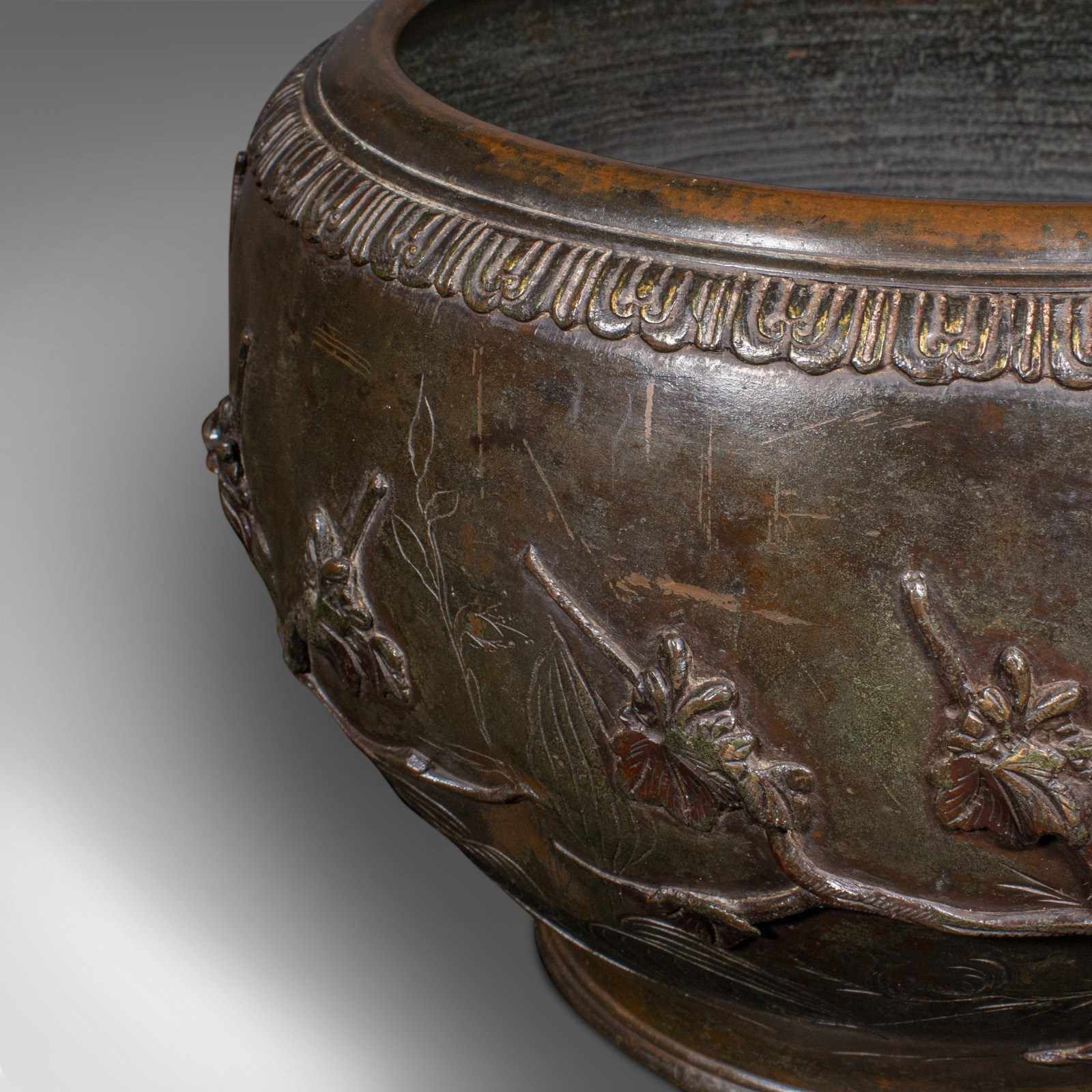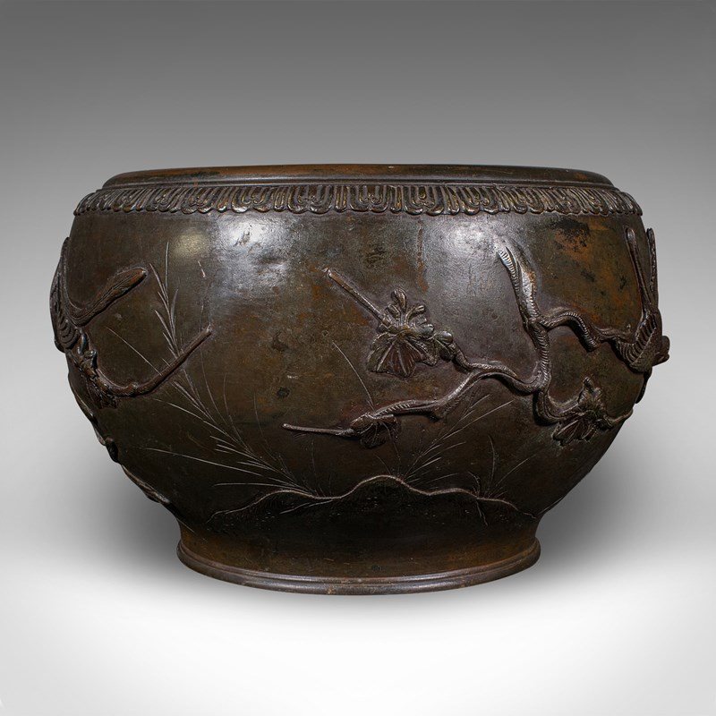 This is an antique jardiniere bowl. A Japanese, bronze decorative planter in Edo period taste, dating to the Victorian age, circa 1850.