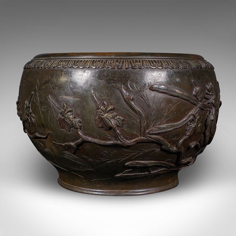 Antique Jardiniere Bowl, Japanese, Bronze, Decorative Planter, Edo, Victorian