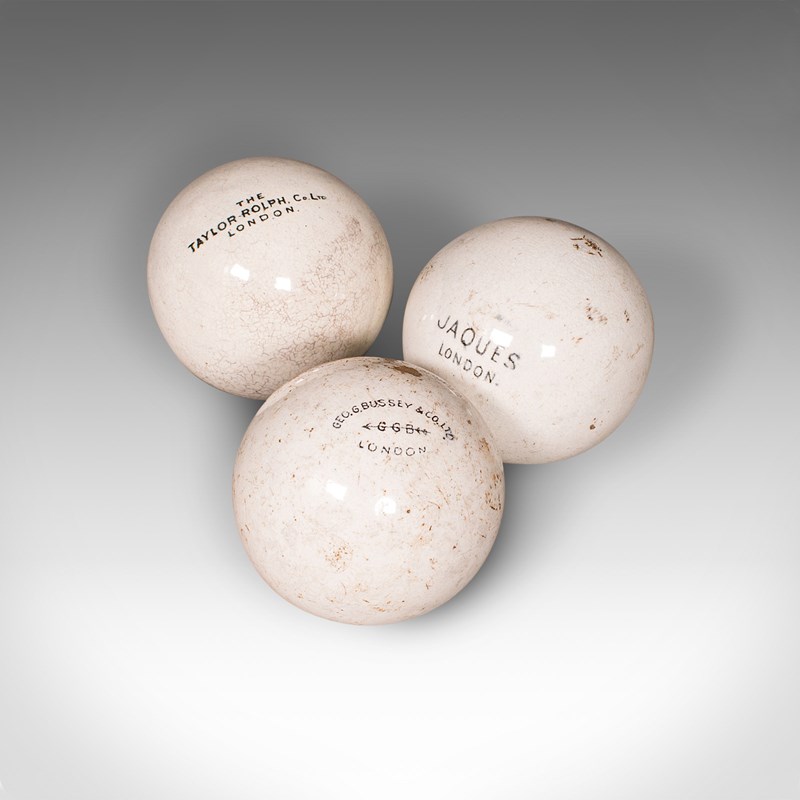 Balls engraved with the Jacques & Son maker's mark and their bias number