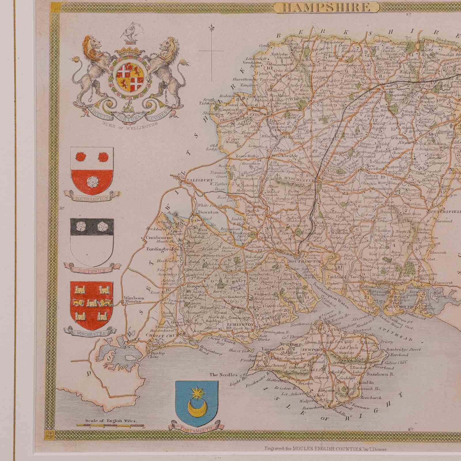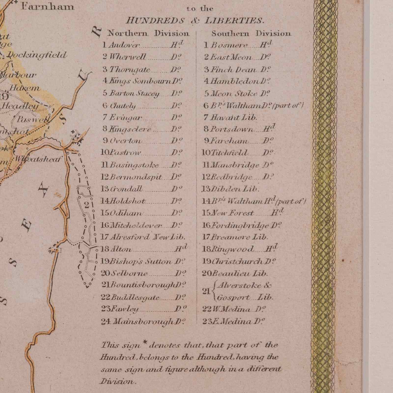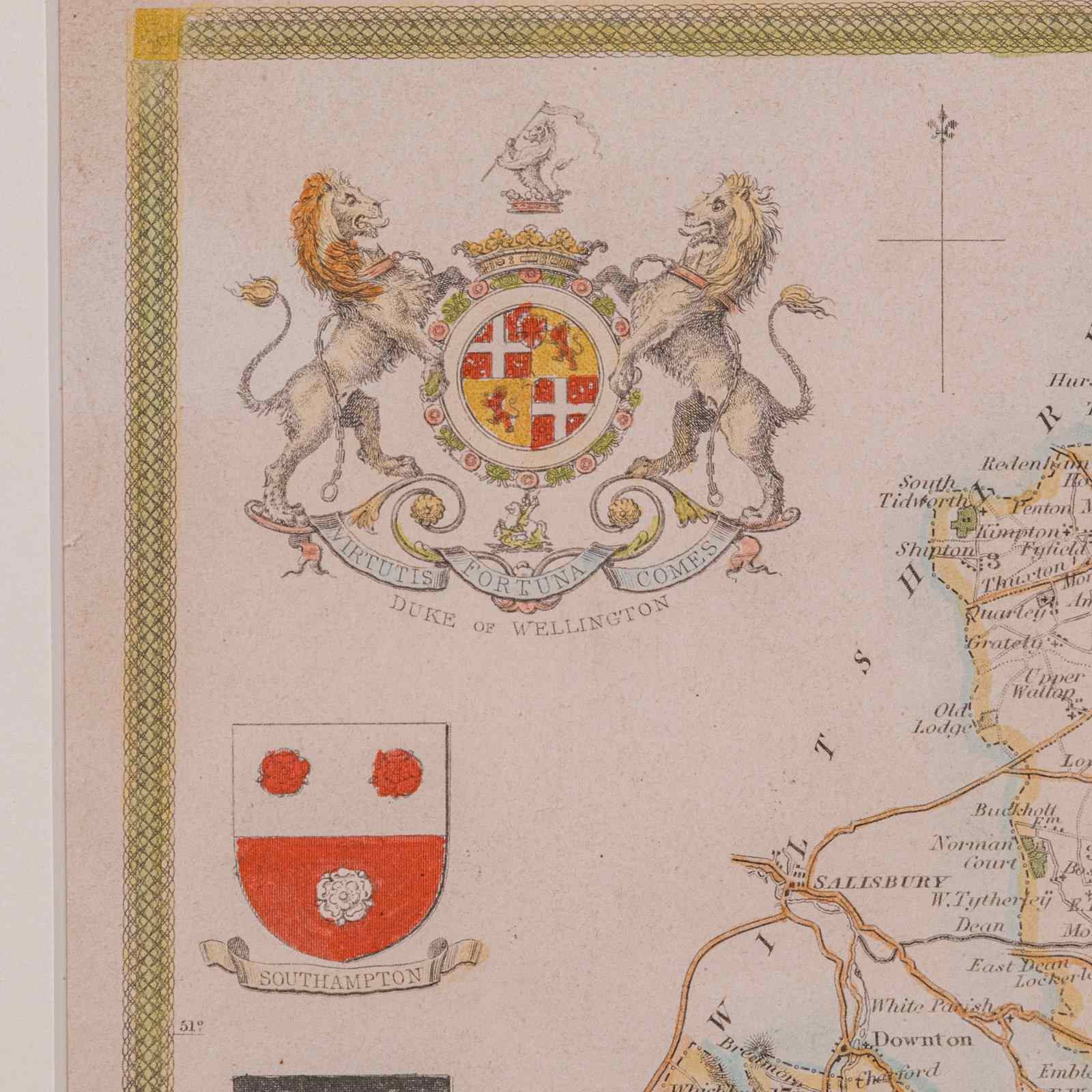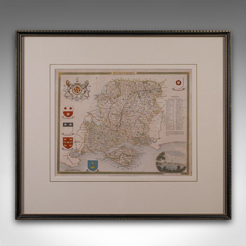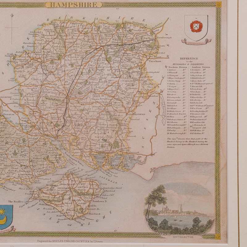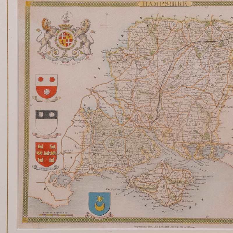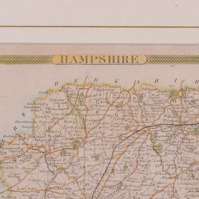 This is a quality antique lithography map of Hampshire, with fine cartographic interest.